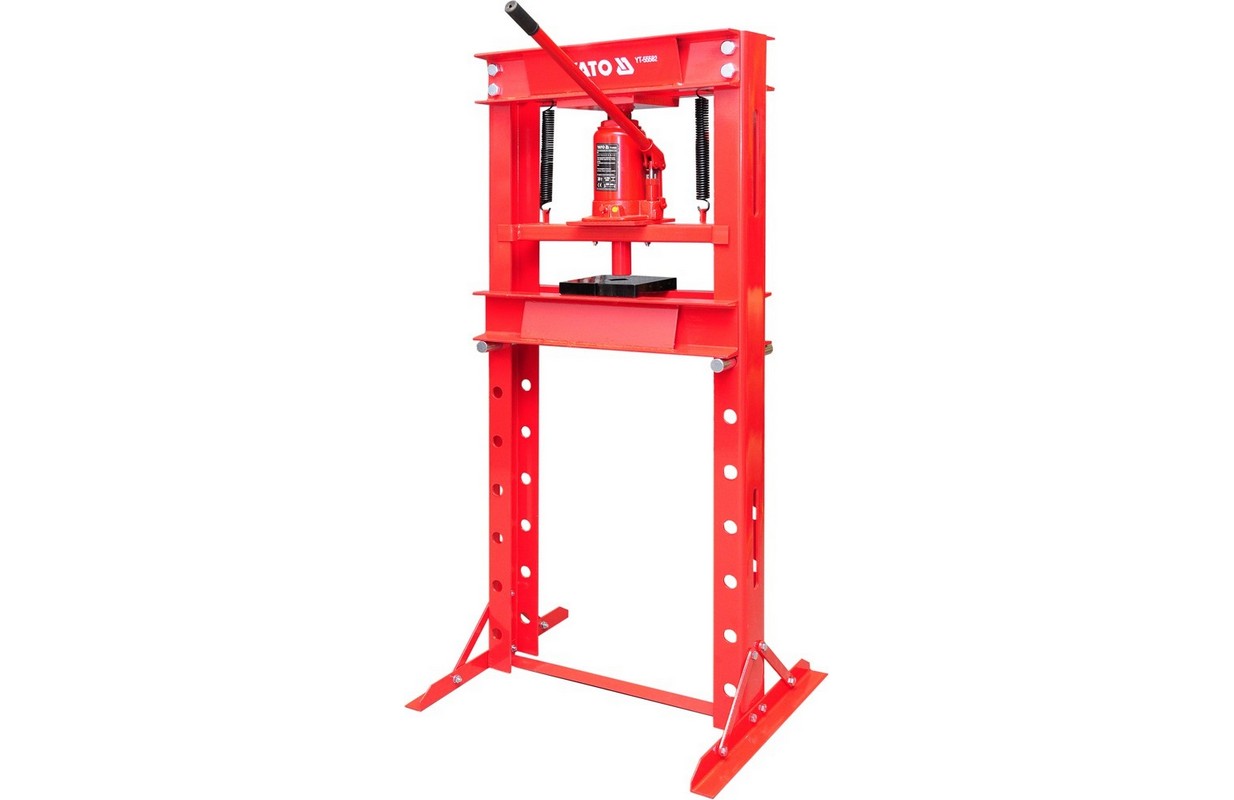 Профессиональный гидравлический пресс с давлением 30 тонн. Его твердые и прочная конструкция делает его можно использовать в любом автомобильной мастерской или производства. Он имеет все необходимые сертификаты, позволяющие им работать в профессиональных учреждениях.