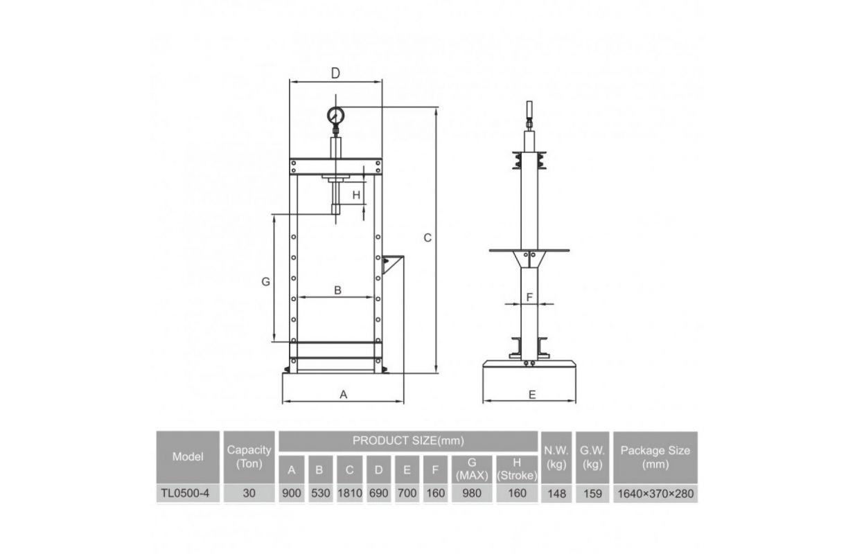 Пневмогидравлический пресс с манометром 30t (TL05004)