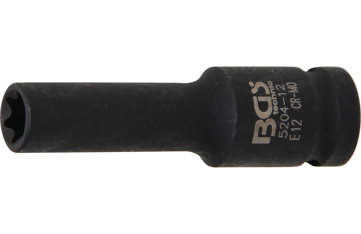 Описание как для ручных, так и для ударных гайковертов можно зафиксировать на ударном гайковерте с помощью штифта и уплотнительного кольца Технические данные Размер ключа E12 Профиль привода Внутренний квадрат Выходной профиль E-Type Размер профиля привода, метрический 12,5 мм Материал Хромо-молибденовая сталь Вес брутто 130 г Размер профиля привода, дюйм 1/2"