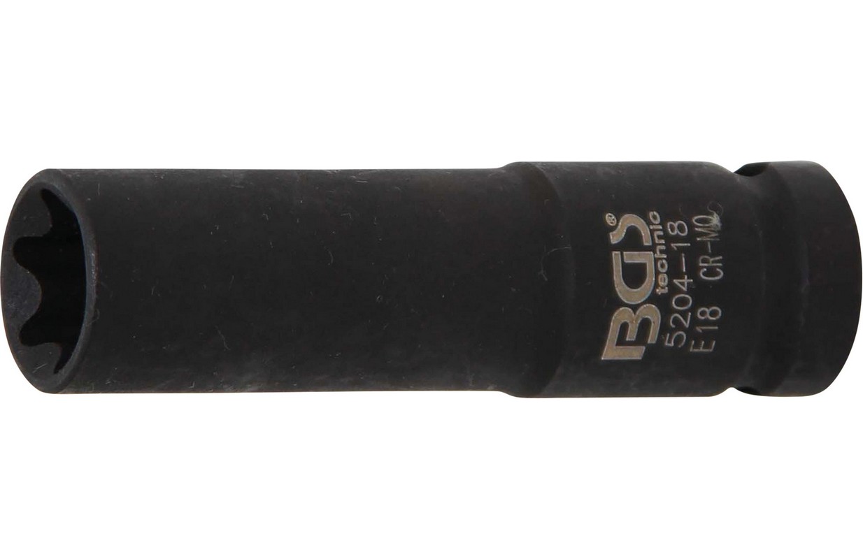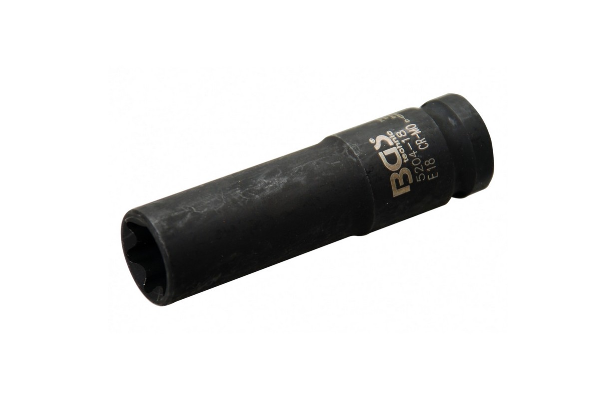Описание как для ручных, так и для ударных гайковертов можно зафиксировать на ударном гайковерте с помощью штифта и уплотнительного кольца Технические данные Размер ключа E18 Профиль привода Внутренний квадрат Выходной профиль E-Type Размер профиля привода, метрический 12,5 мм Материал Хромо-молибденовая сталь Вес брутто 180 г Размер профиля привода, дюйм 1/2"