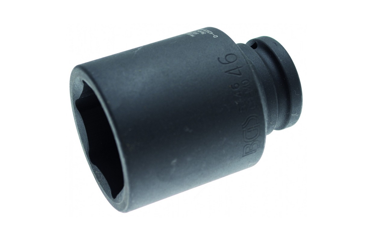 Описание как для ручных, так и для ударных гайковертов можно зафиксировать на ударном гайковерте с помощью штифта и уплотнительного кольца Технические данные Длина 90 мм Размер ключа 46 мм Вес брутто 1100 г Материал Хромо-молибденовая сталь Обработка поверхности Фосфатирование Размер профиля привода, дюйм 3/4" Выходной профиль Шестиугольник Размер профиля привода, метрический 20 мм Профиль привода Внутренний квадрат