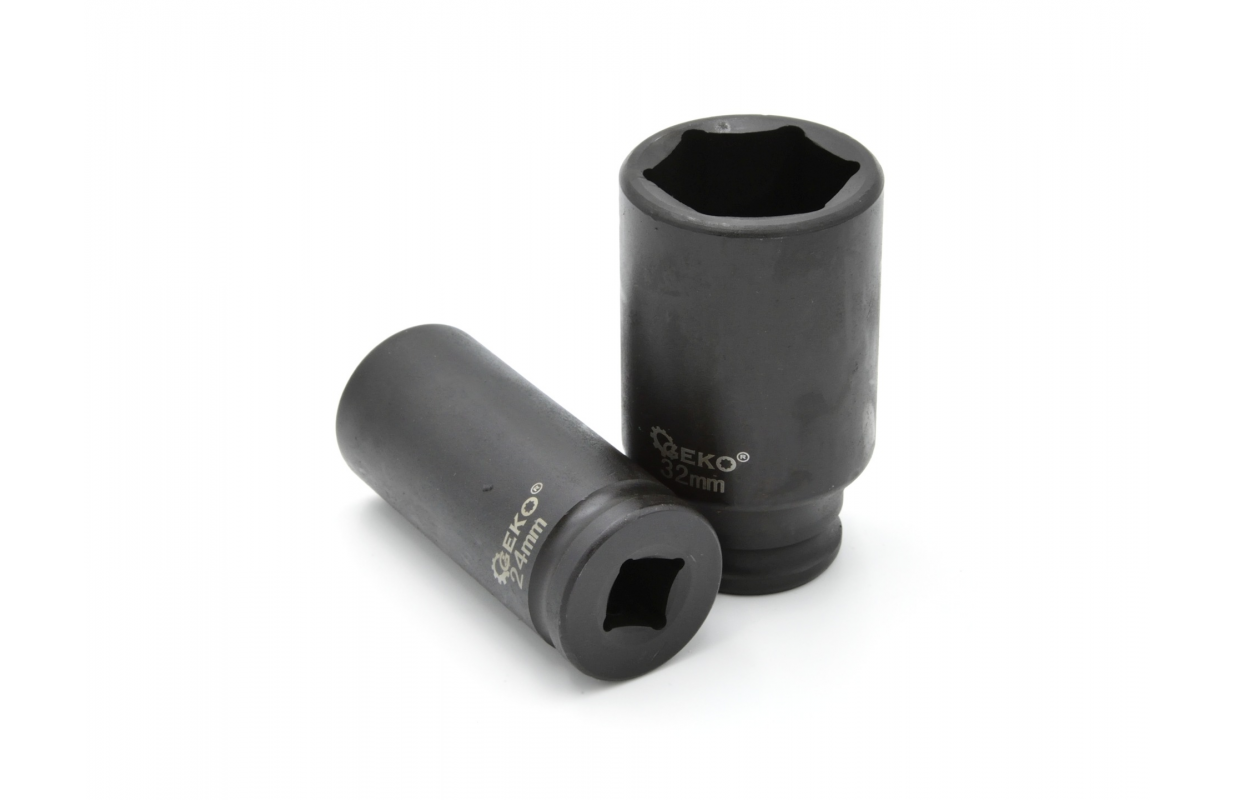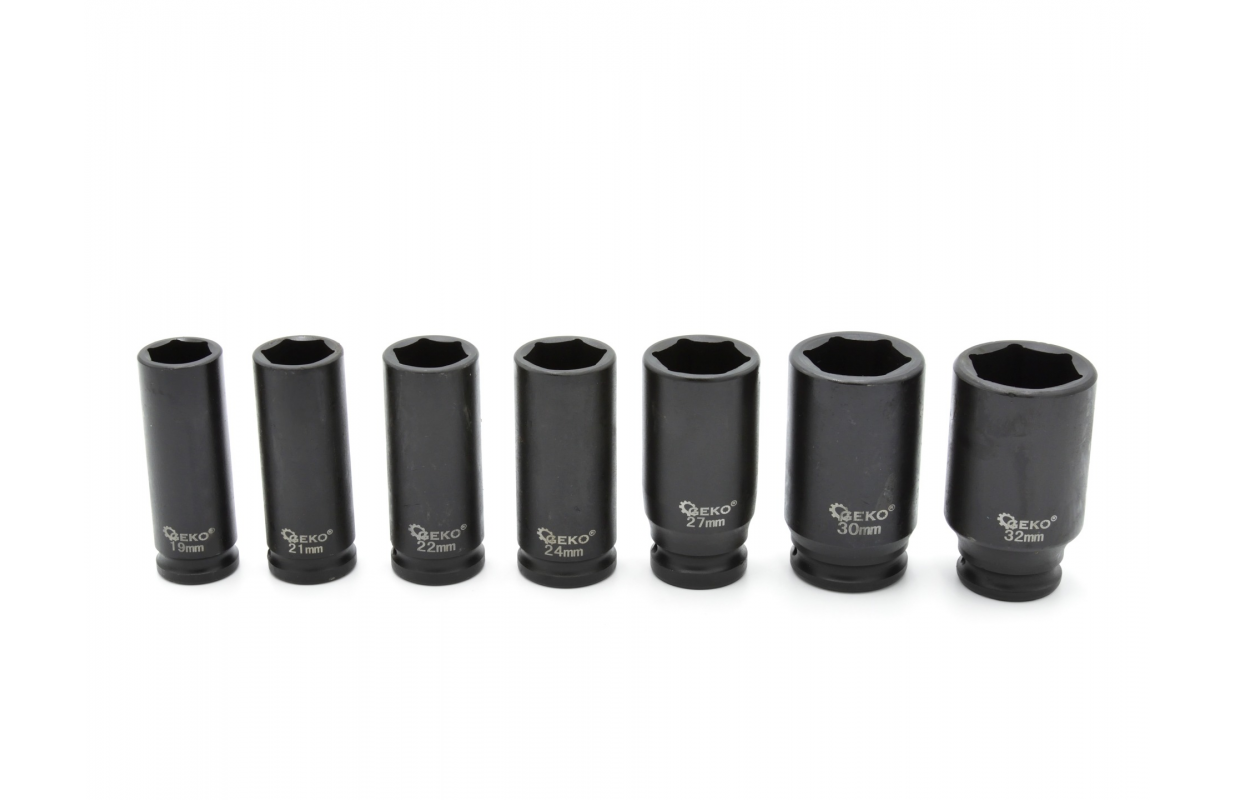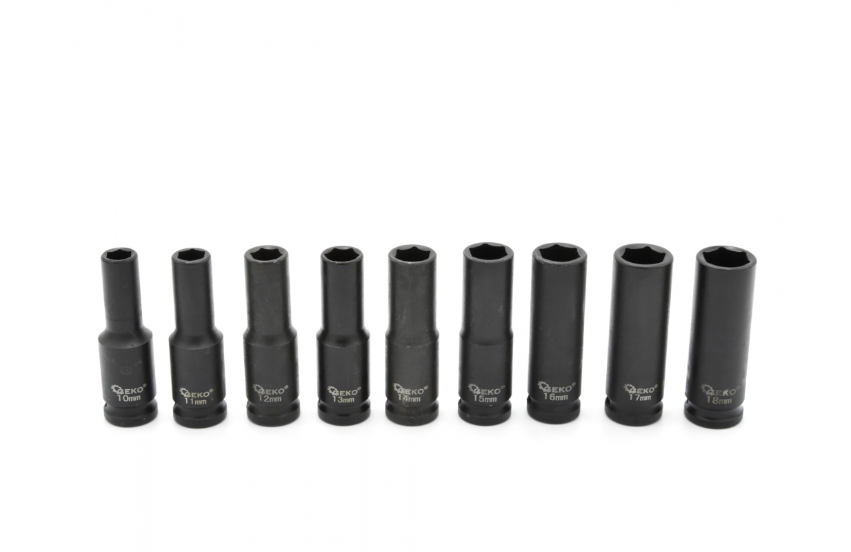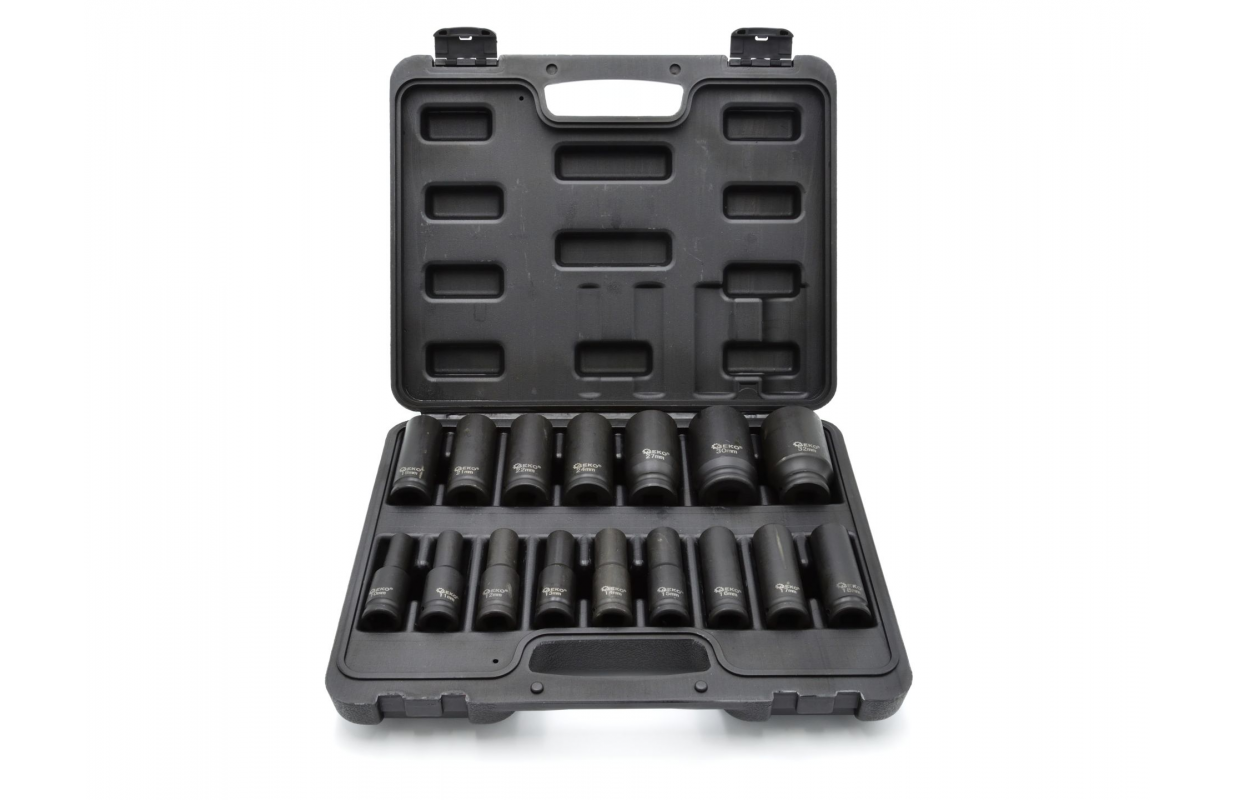 Набор ударных головок длинный (78мм) 1/2". Поставляется с 16 насадками, упакованными в пластиковый кейс.