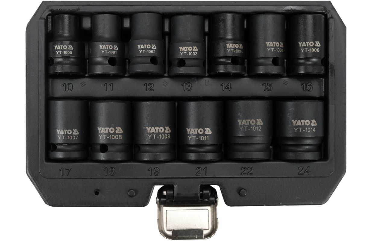 Метка Ято Символ ИТ-10251 Тип удар Размер держателя инструмента 1/2 дюйма (12,7 мм) Тип кепки шестиугольный, короткий Материал CrMo SCM-440 Чистота поверхности фосфатированные КАК ДРАЙВ Да Количество штук в наборе 13