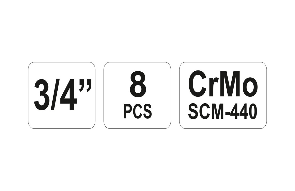 Набор торцевых ударных головок | 3/4" 22-41 мм 8шт (YT-1115)