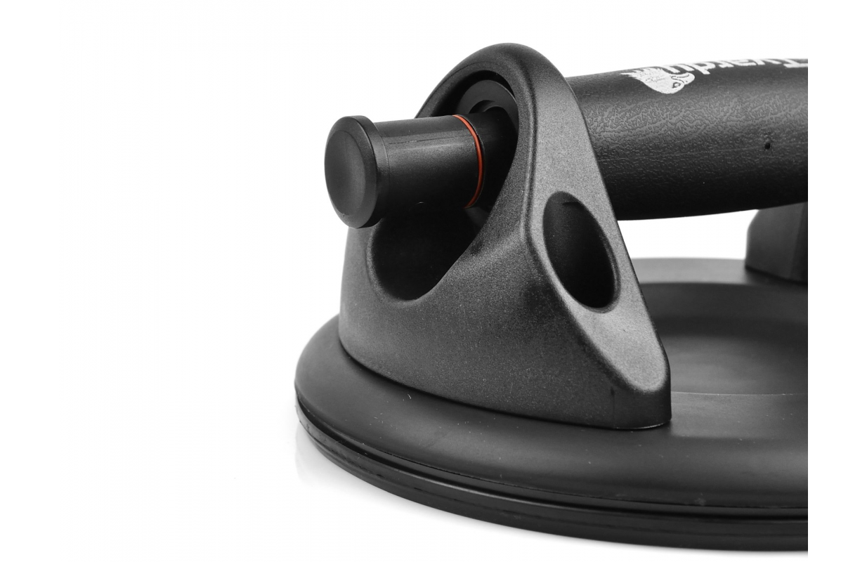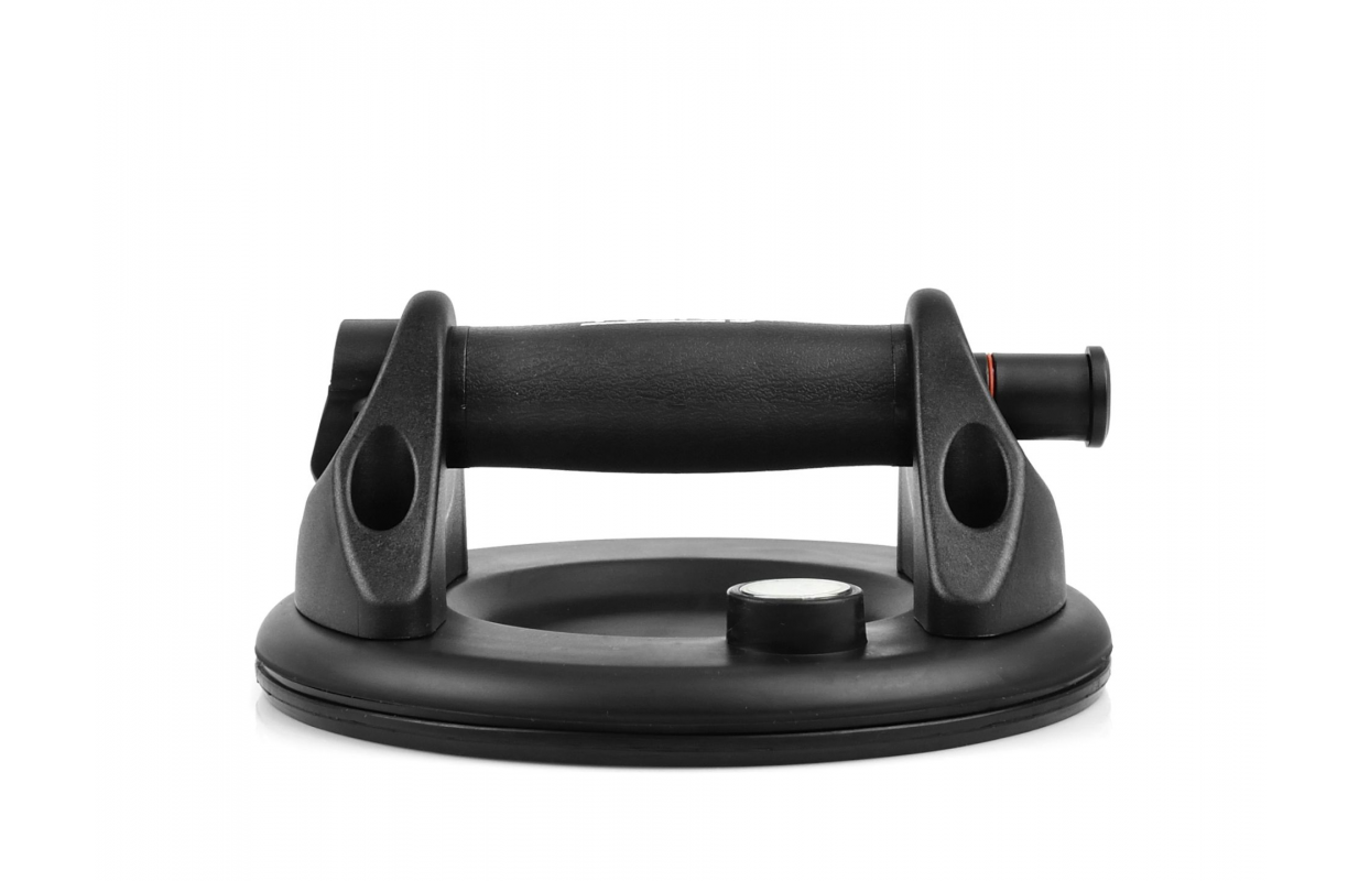 Ручка-вакуумная присоска для стекла с маноментрем предназначена для переноски различных элементов с гладкой поверхностью. Цилиндр насосной системы изготовлен из прочного алюминия, покрытого удобным силиконовым пластиком для безопасного и надежного захвата во время обработки.
