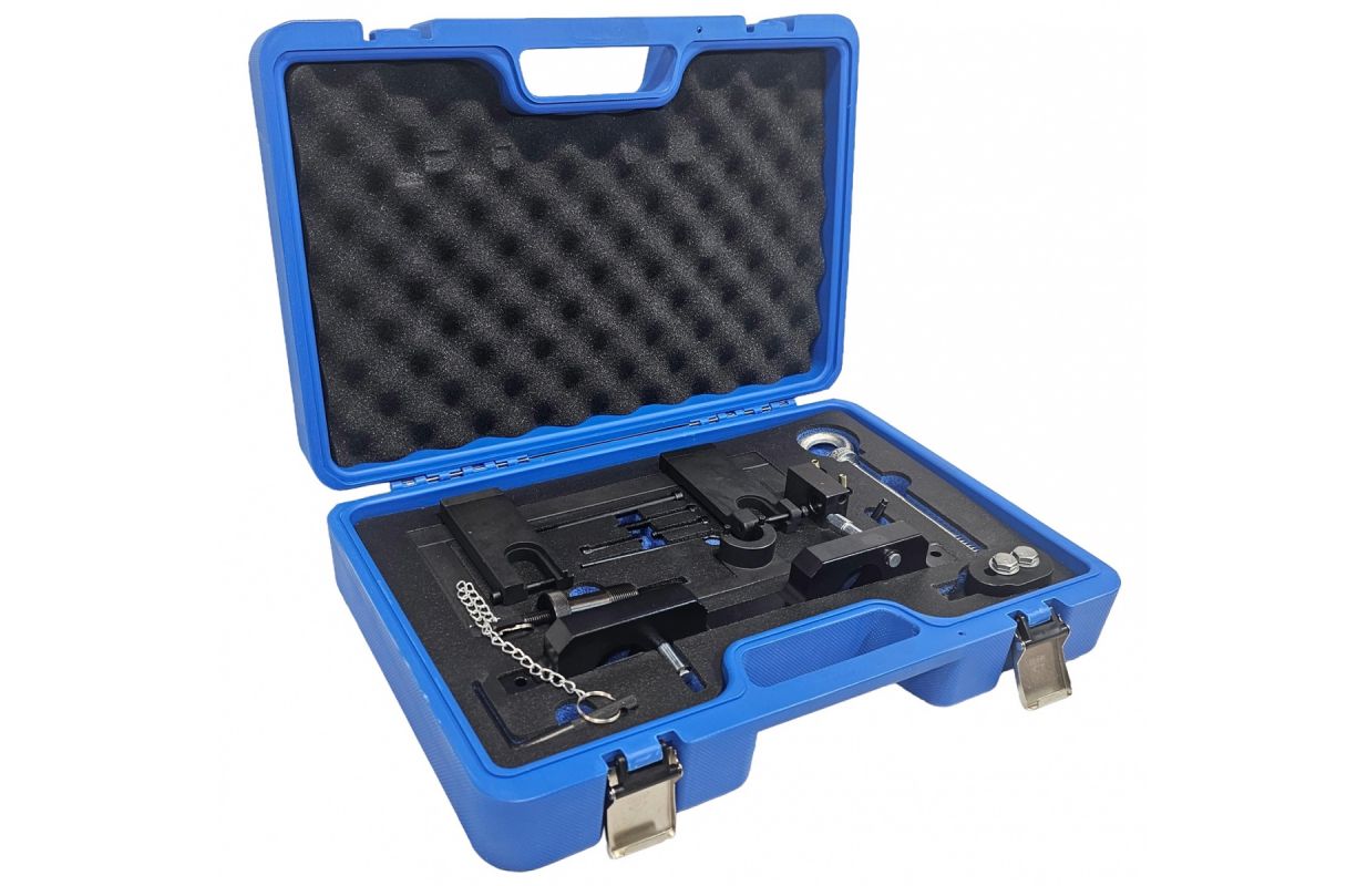 Этот набор инструментов включает инструмент для выставления времени кулачкового вала, инструмент для удержания маховика, инструмент для балансировочного вала, инструмент для снятия форсунок и крюк для подъема двигателя. В этом комплекте больше инструментов, чем в других наборах, и он предлагает более широкий функционал, что позволяет удовлетворить различные потребности и сделать вашу работу более удобной.