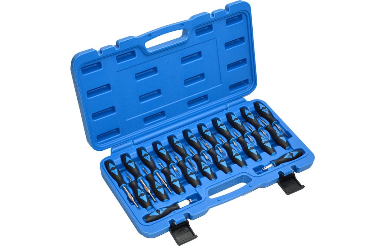 Этот набор инструментов особенно полезен для очистки или замены клемм и отсоединения их от электрических соединений без повреждения разъема или кабеля