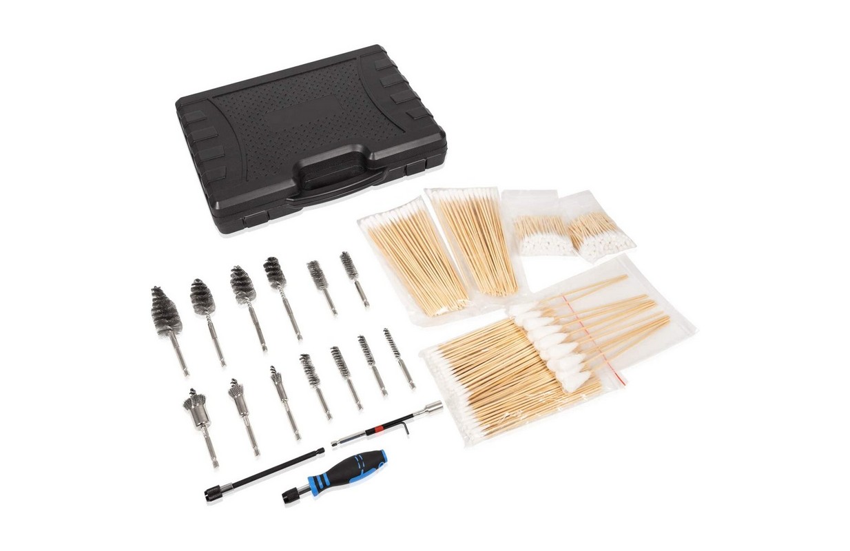 В комплект входят адаптеры, держатели и щетки для очистки разъемов дизельных форсунок.
