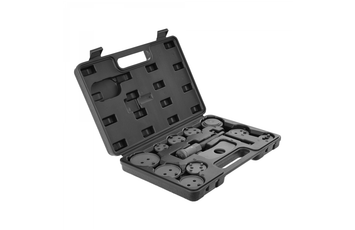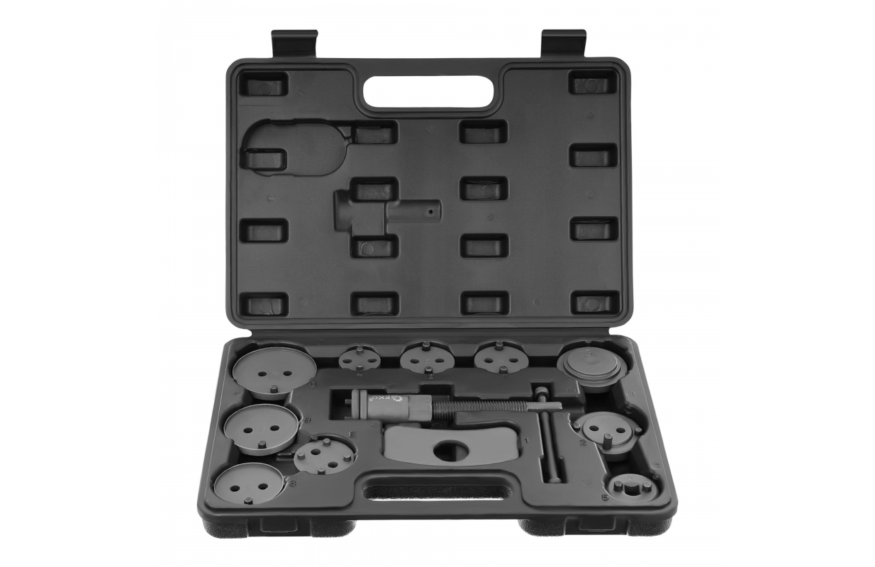 Профессиональный комплект для реверсирования/отжима поршня тормоза из 12 предметов, необходимый для ремонта автомобилей, оборудованных дисковыми тормозами.