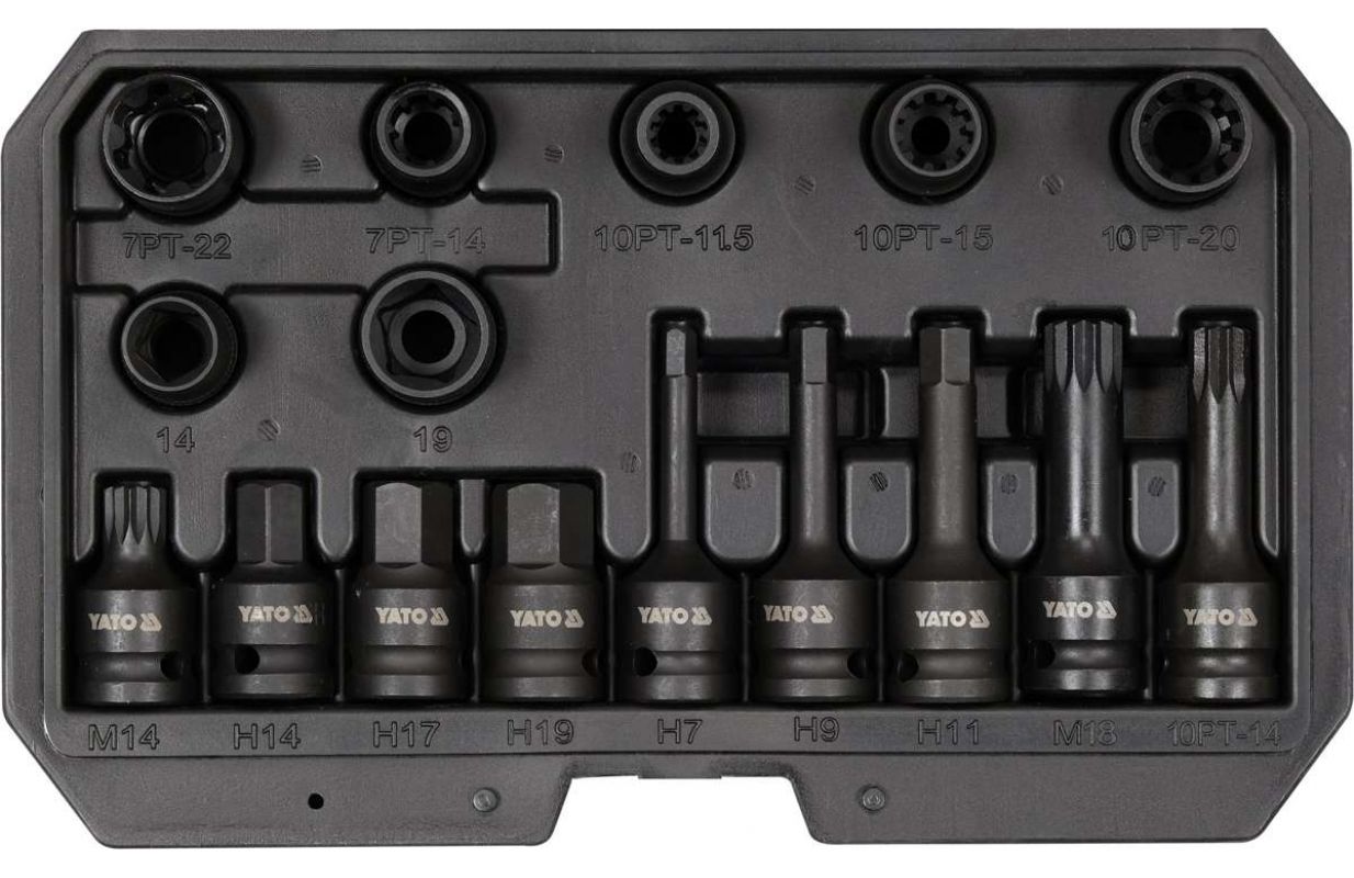 Специальная пятигранная торцевая головка 1/2 "x2 (5 точек: 14 мм, 19 мм)| торцевая головка 1/2 "x5 (7 точек: 14 мм, 22 мм; 10 точек: 11,5 мм, 15 мм, 20 мм)| 1/2 "x2 (5 точек: 14 мм, 19 мм).