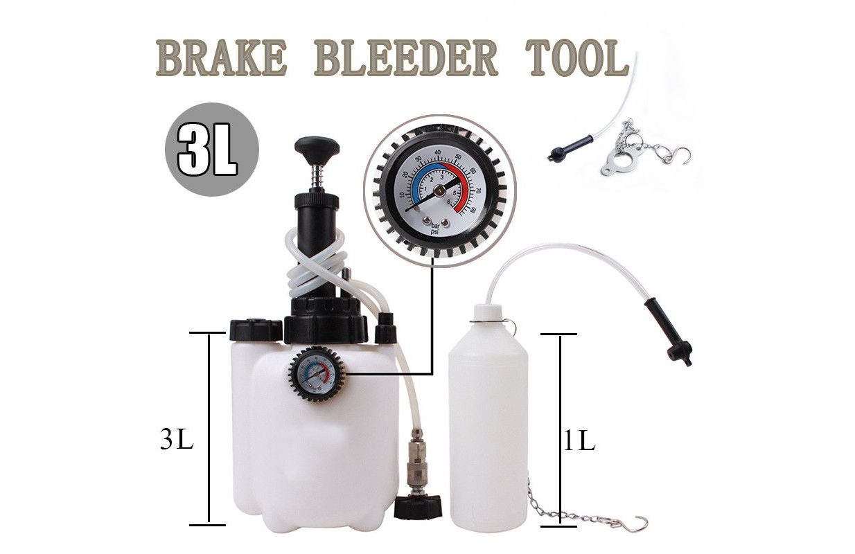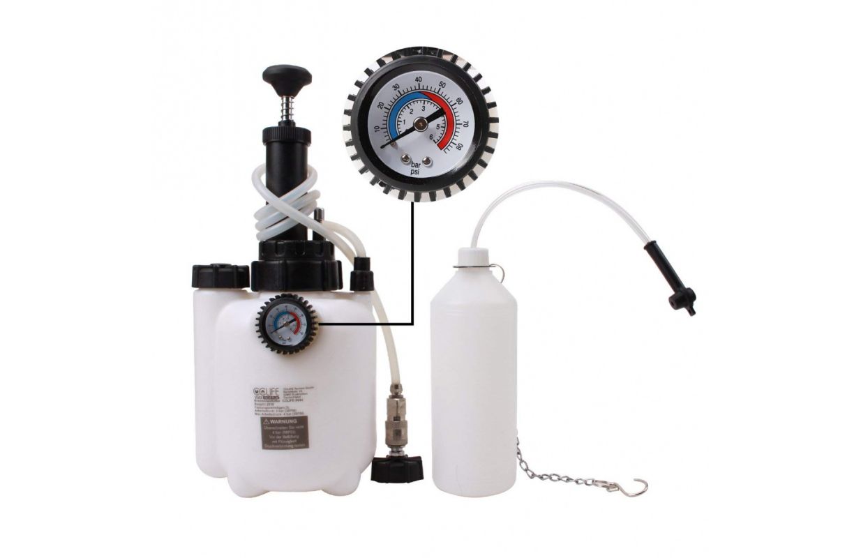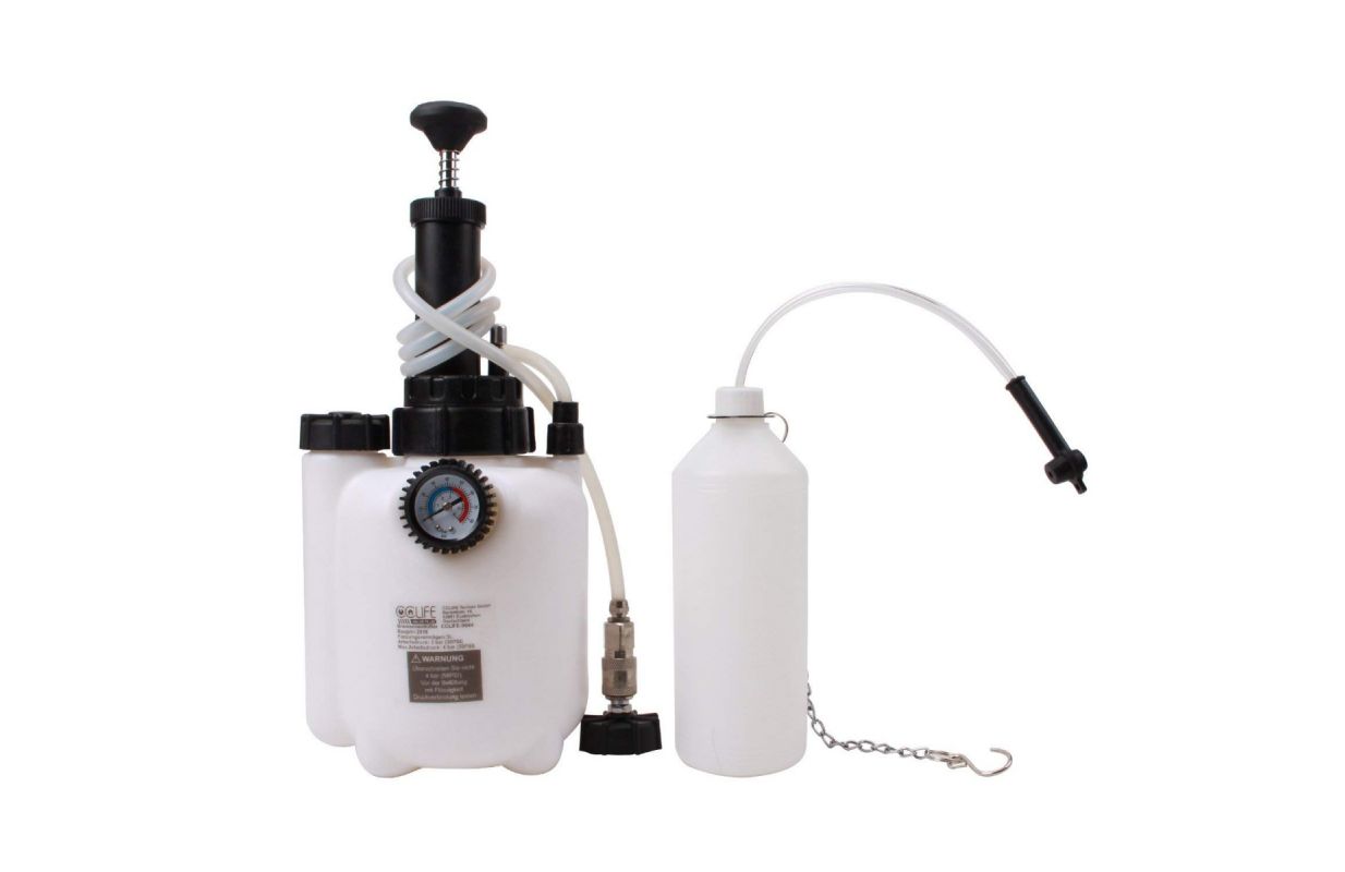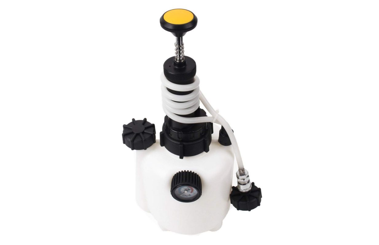 Изготовлен из прочного пластика и прост в обслуживании, он облегчает прокачку тормозов моторизованных транспортных средств и имеет объем около 3 литров.