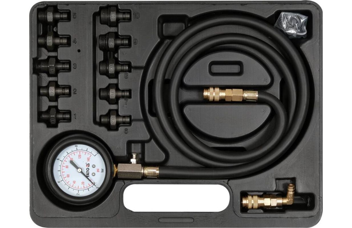 Манометр для измерения давления масла | с длинным шлангом и переходниками | 12 шт (YT-73031)