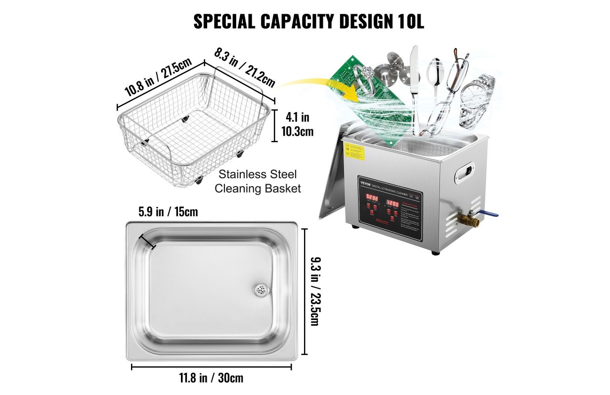 Профессиональный ультразвуковой очиститель с цифровым таймером и нагревателем 10л (VEV-8430): эффективная очистка и комфортное использование