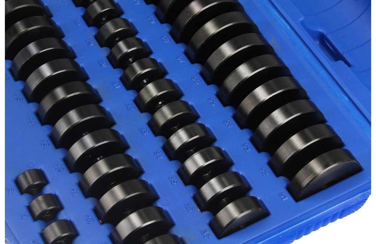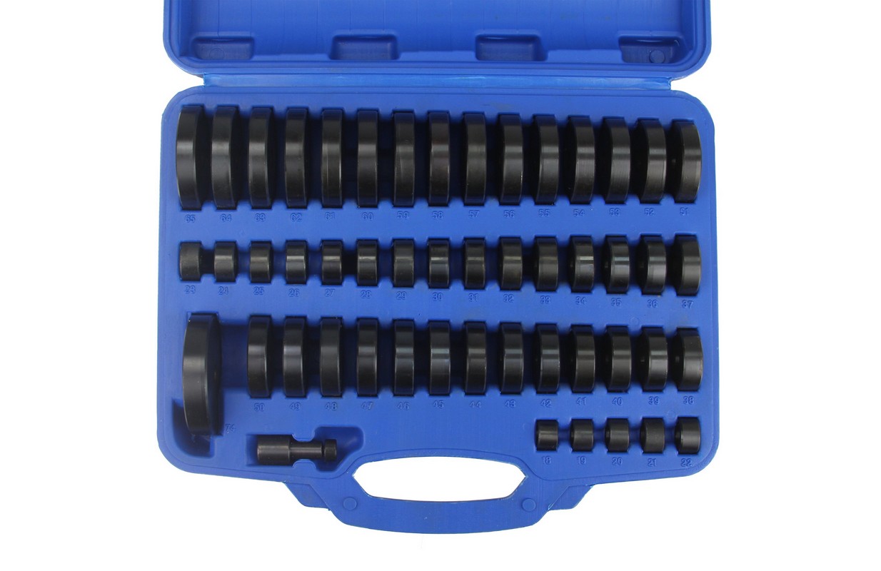 Набор оправок для монтажа и демонтажа подшипников, 18-74 мм, кейс, 49 предметов МАСТАК 100-20049C предназначен для работ по демонтажу подшипников, а также сальников.