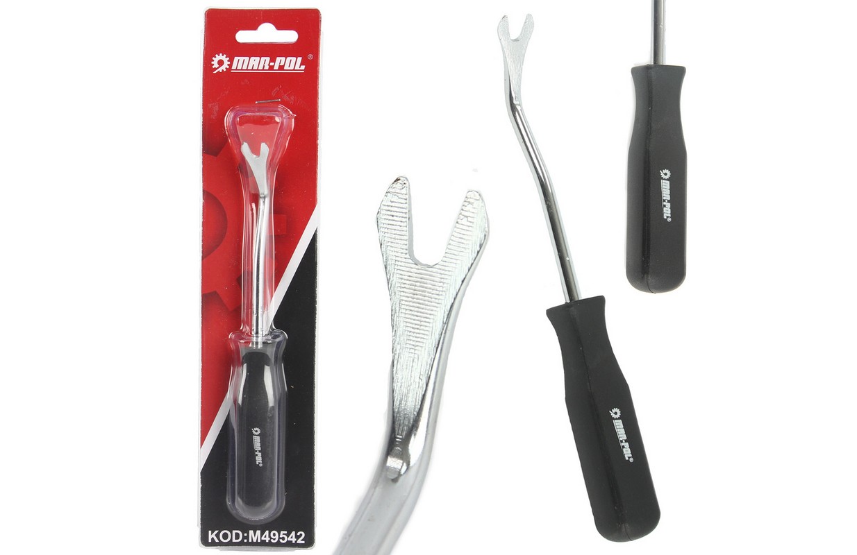 Съемник обивки служит для отсоединения зажимов, соединяющих различные элементы салона и кузова автомобиля.