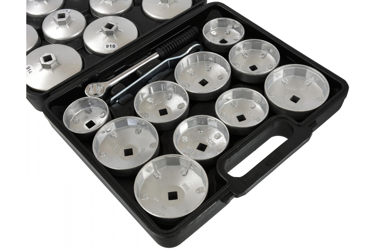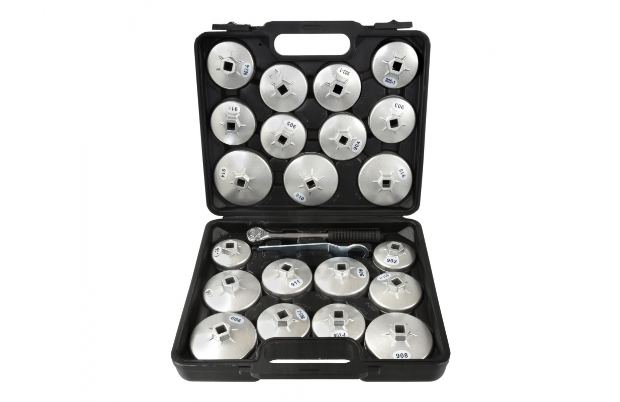 Комплект из 21 насадки для откручивания масляных фильтров. Он подходит для большинства легковых автомобилей, выпускаемых на европейском, американском и азиатском рынках.
