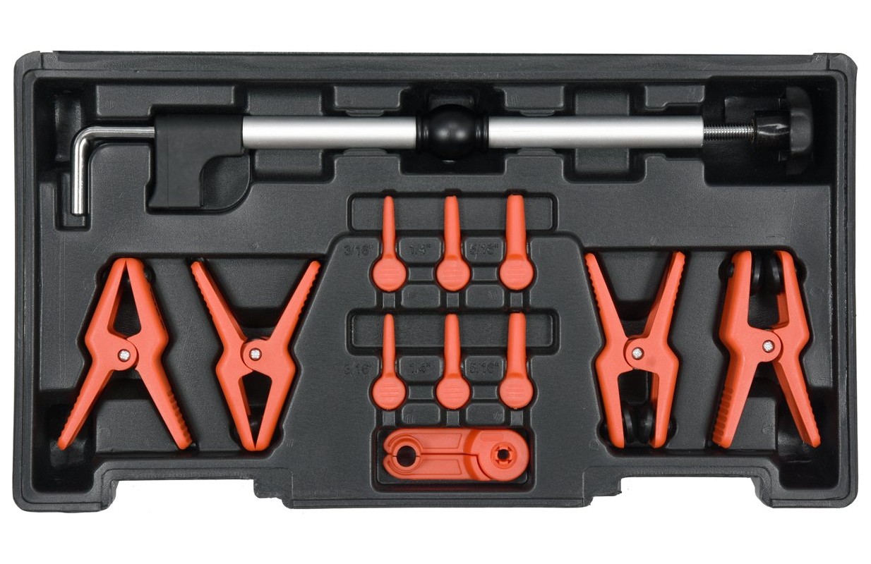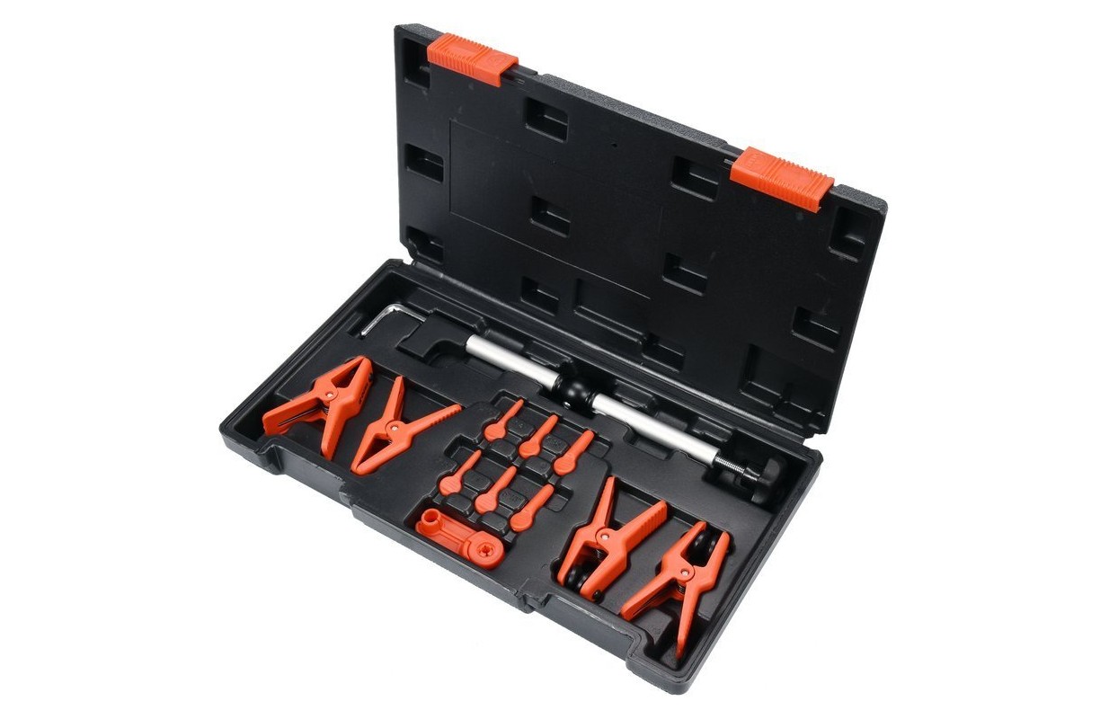 Набор хомутов для металлических и гибких шлангов для остановки потока топлива в них. Предотвращает утечку жидкости при сборке и разборке узлов.