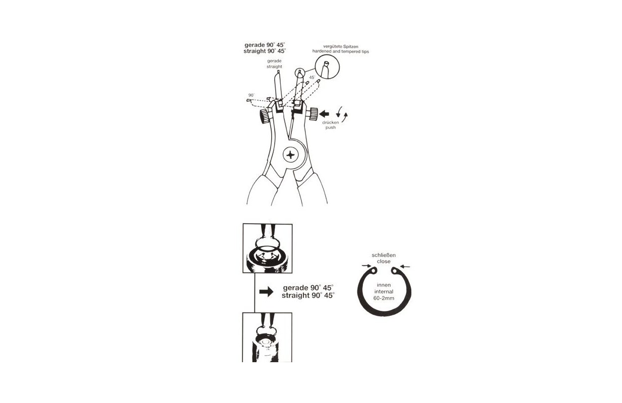 Клещи для колец прямой / 45° / 90° для внутренних колец 165 мм (446)