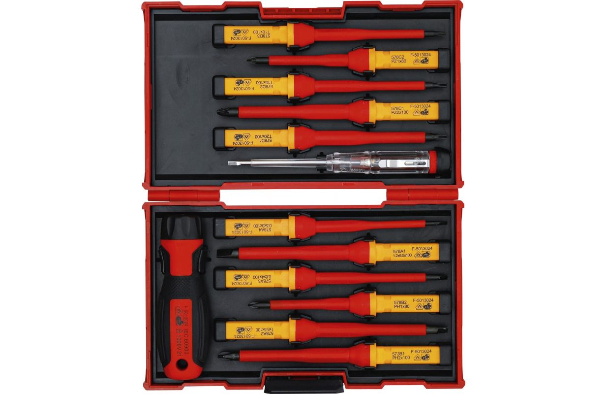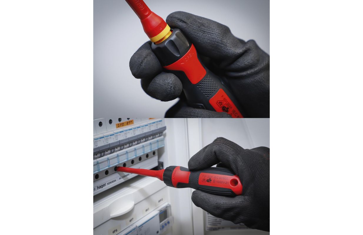 комплект поставки: 1 рукоятка VDE с держателем сменных лезвий, с 2-х компонентной рукояткой (красная/желтая).