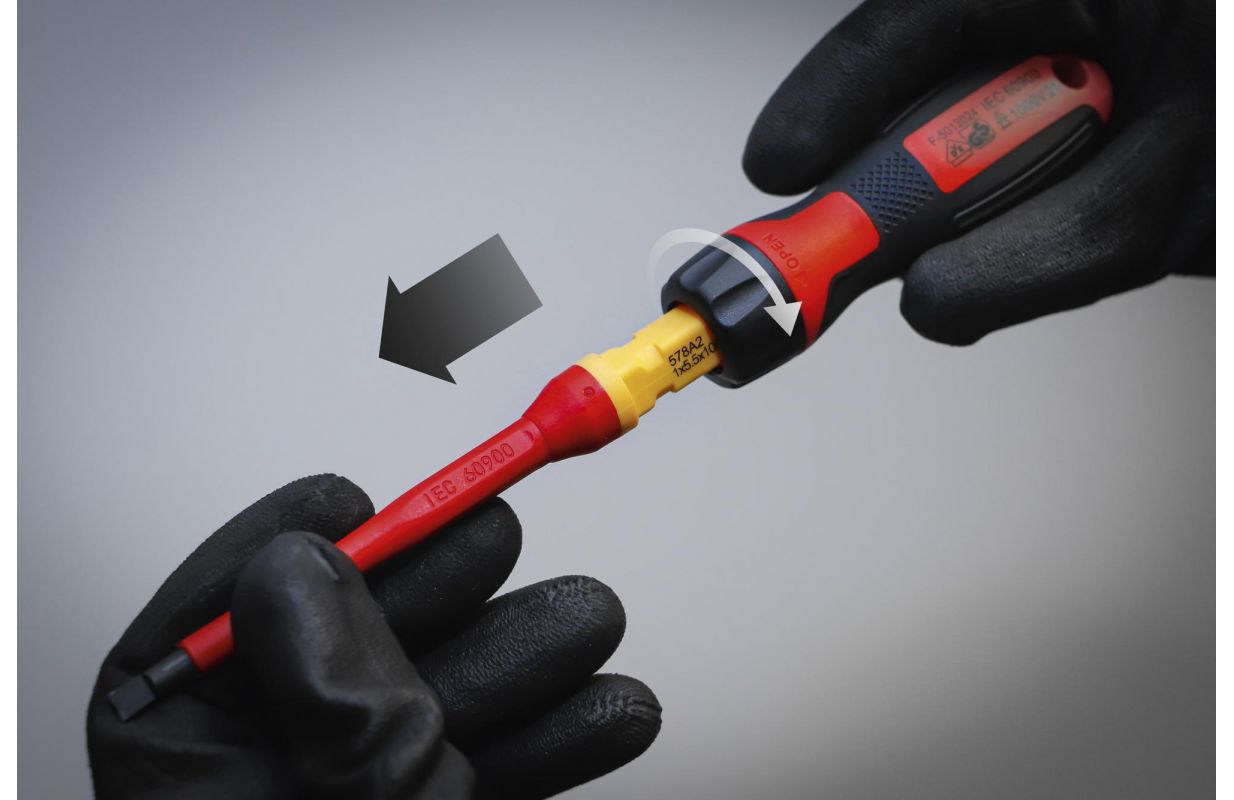 1 рукоятка VDE с держателем сменных лезвий, с 2-х компонентной рукояткой (красная/желтая).