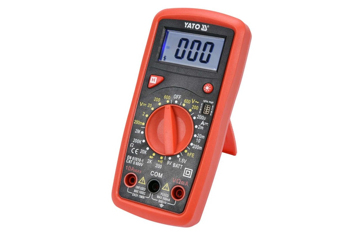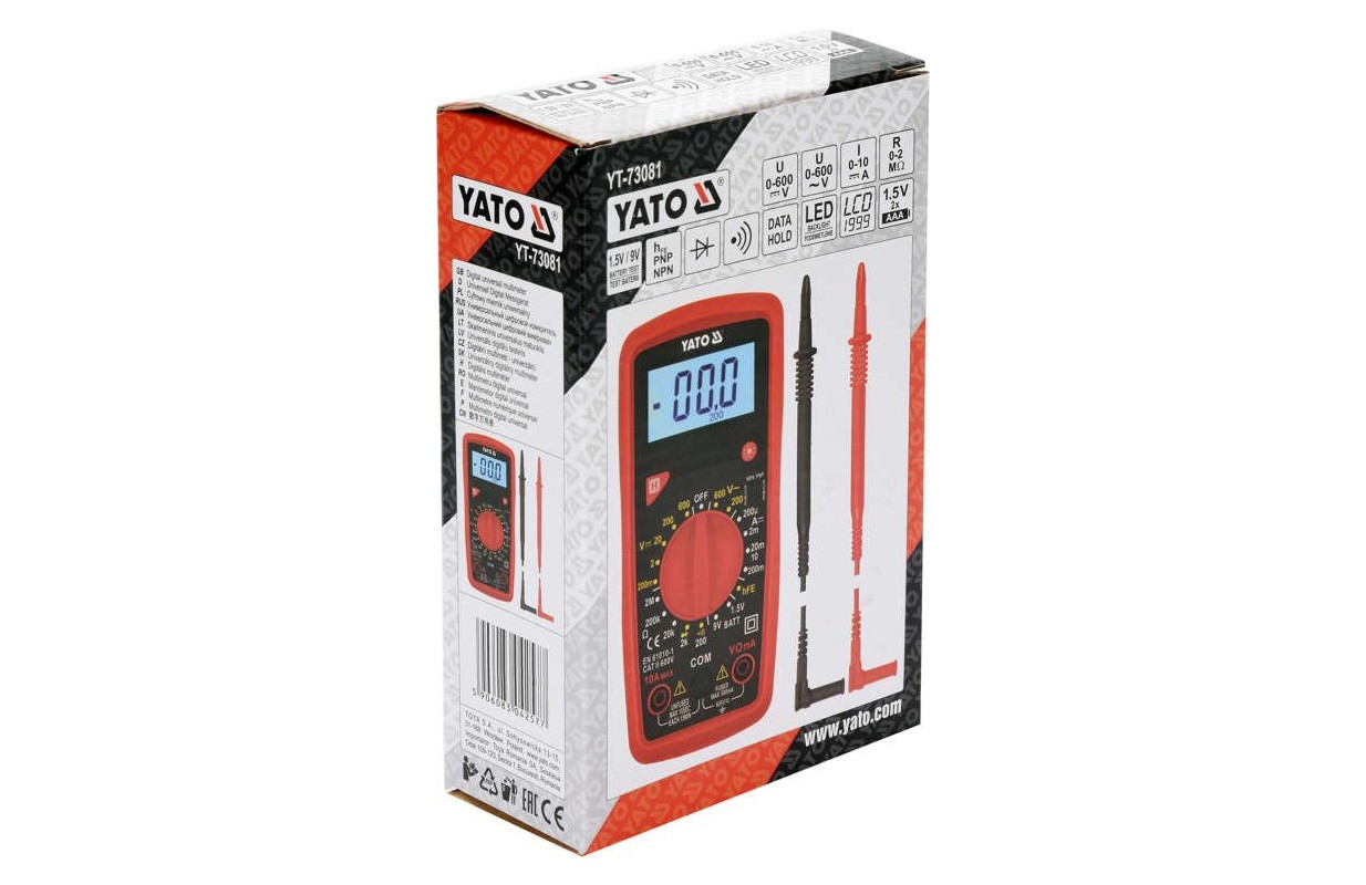 Универсальный измеритель YT-73081 с ручным диапазоном для каждого измерения позволяет выполнять базовые и расширенные электрические измерения. Дополнительной и полезной опцией является тест батареи 1,5В и 9В, с помощью которого мы можем проверить напряжение тестируемой батареи под нагрузкой, это поможет оценить ее состояние и исключить или подтвердить необходимость замены.