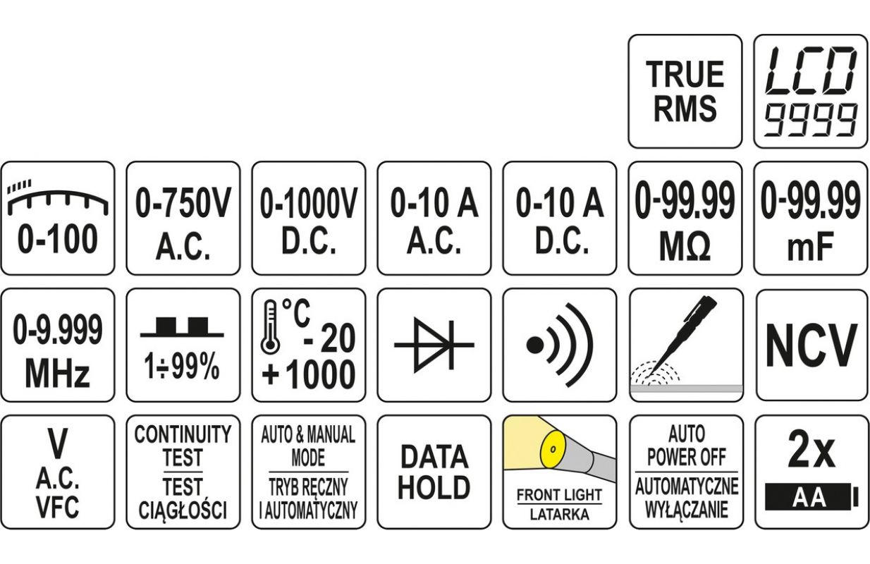 Измерение напряжения переменного тока: 0–750 В + True RMS + V.F.D.