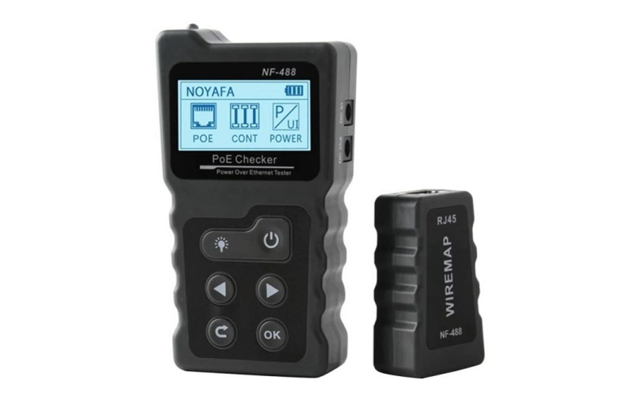 Сетевой тестер с большим выбором возможностей позволяет использовать устройство при тестировании POE оборудования, идентификации стандарта POE, присутствует функция проверки мощности, тестирование разводки кабеля.