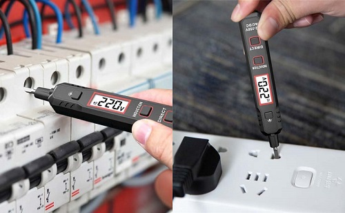 Бесконтактное обнаружение и измерение переменного напряжения. Индикация напряжения с помощью 3-уровневых звуковых и световых сигналов.