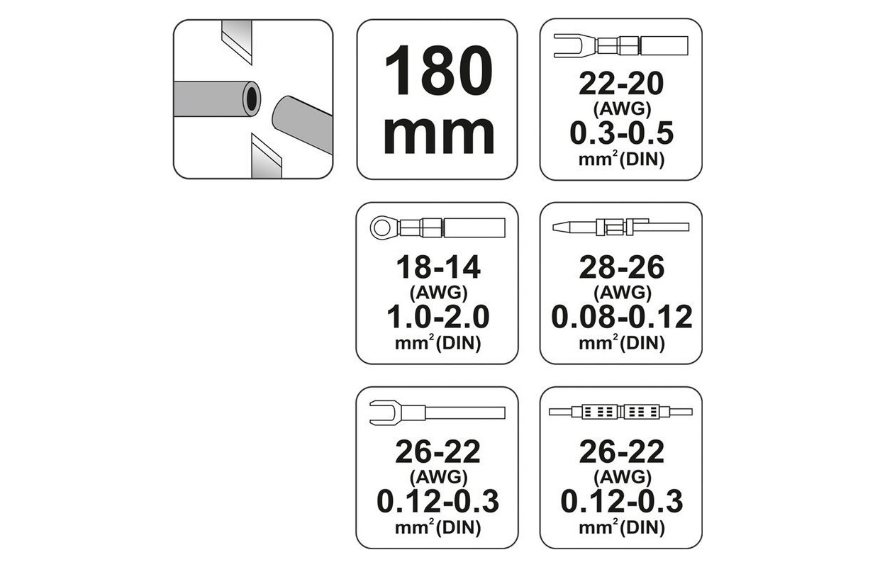 Инструмент для обжима и зачистки проводов 180мм для насадок 3 сортов (YT-2255)