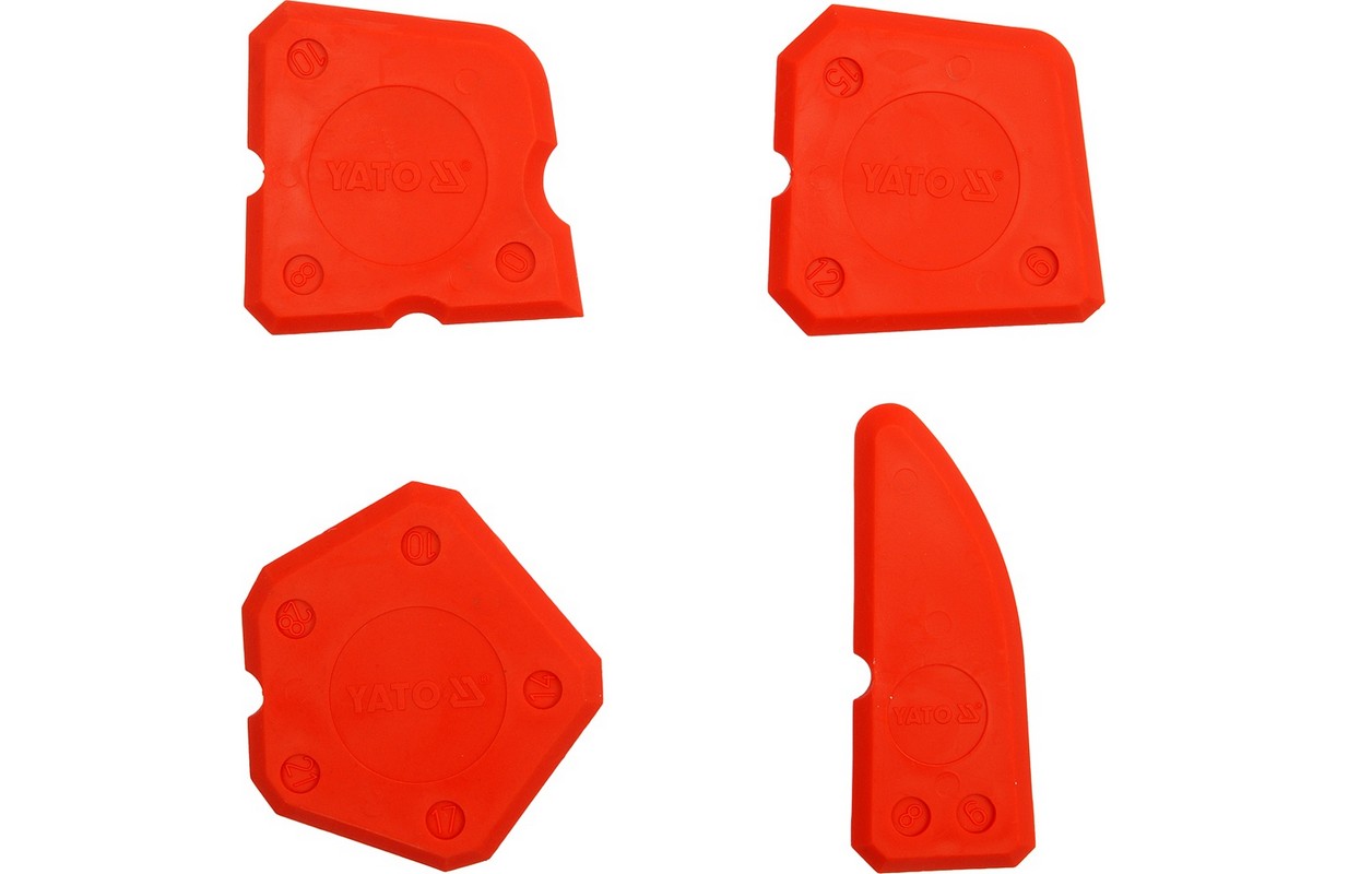 Профили кромок правильно выдавливают и сглаживают швы между плитками. Изготовлен из мягкого гибкого пластика на основе силикона. Они не повреждают края и не рисуют застекленные поверхности. В кпл. Четыре шпателя разной толщины и профиля.