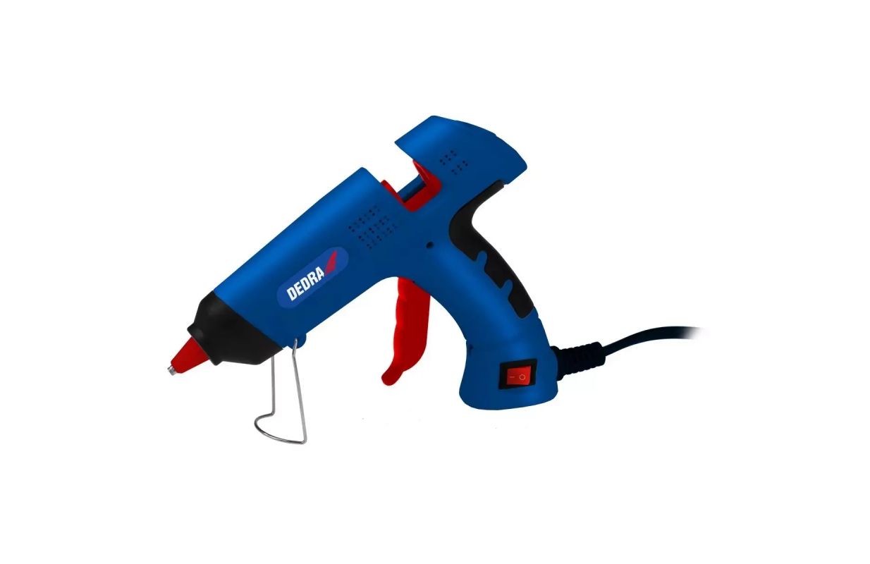 Клеевой пистолет DEDRA DED7549 имеет устойчивую проволочную подставку, которая позволяет безопасно положить пистолет во время работы.