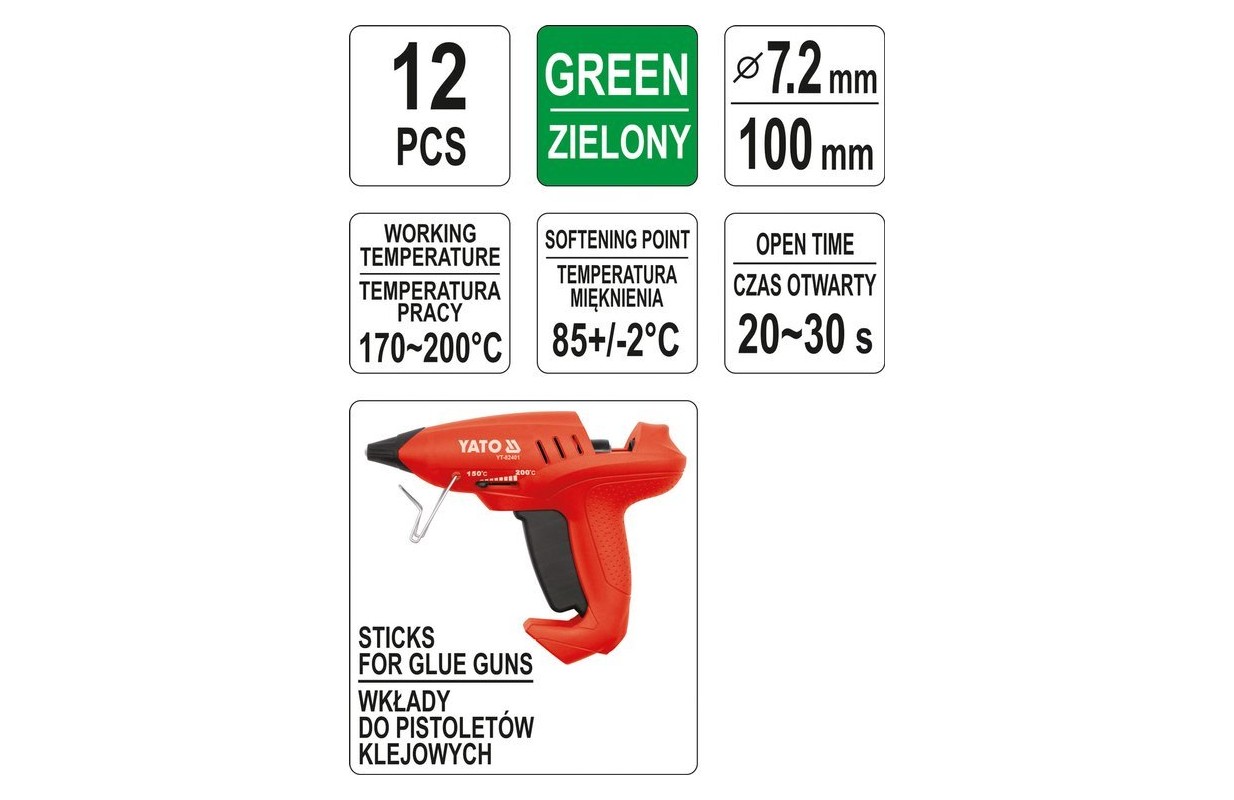 Клеевые стержни для пистолета | зеленые | 7,2X100 мм | 12 шт. (YT-82444)