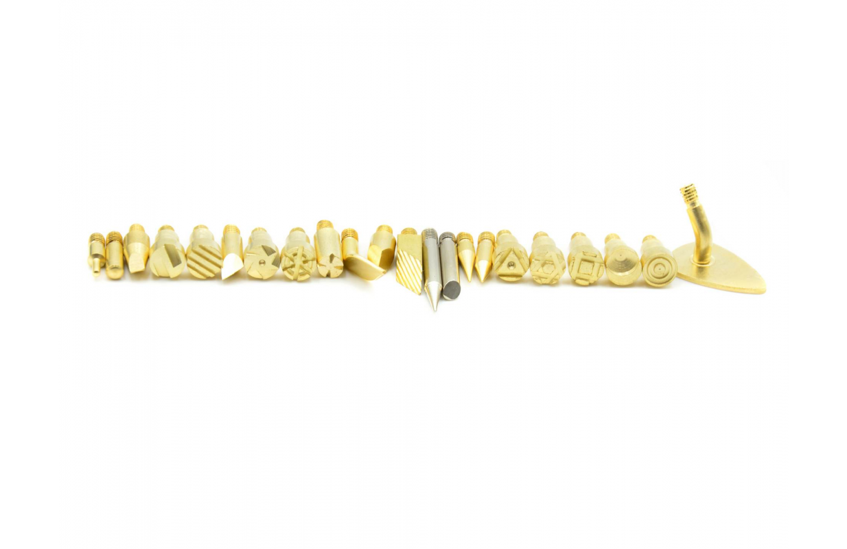 Горелка для дерева и кожи мощностью 60 Вт с набором из 23 различных насадок и подставкой. Идеально подходит для обжига декоративных узоров, рисунков по дереву, коже, пробке и т.д.