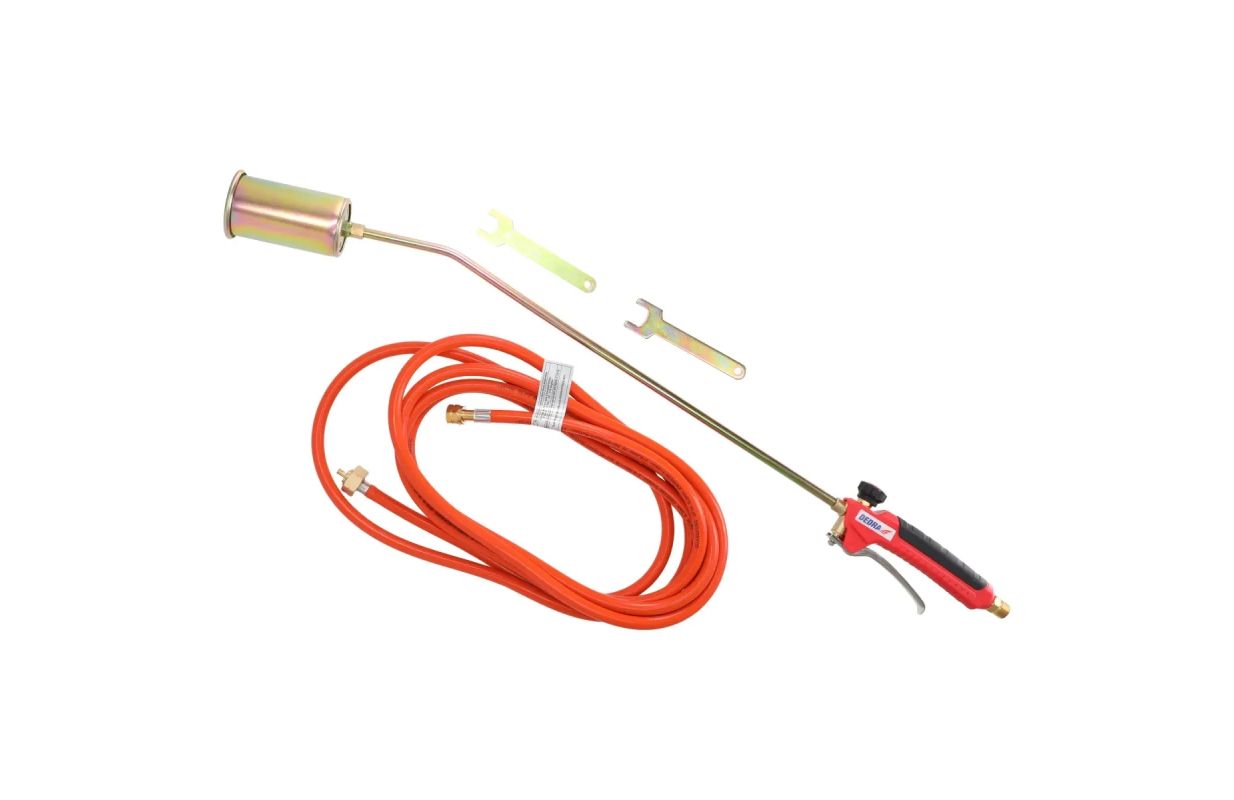 Кровельный набор с одной насадкой - это инструмент для нагрева, пайки, усадки и горячей склейки. Комплект оснащен соплами диаметром 60 мм. Соединительный кабель имеет длину 5 м, что обеспечивает пользователю большую свободу действий. С помощью ручки в верхней части горелки можно регулировать поток газа, а значит, мощность и размер пламени. Кроме того, на корпусе паяльной горелки имеется ручка, на которую можно поставить нагретую паяльную горелку после работы. Комплект используется без регулятора на баллоне, с использованием 11-килограммового газового баллона.