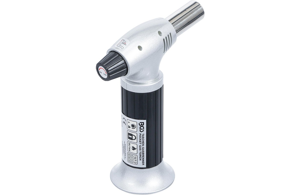оснащен пьезоподжигом, блокировочным выключателем и регулятором размера пламени