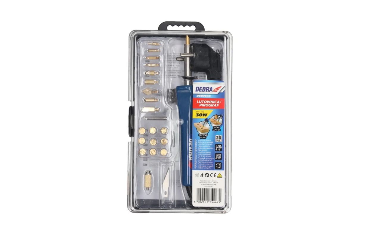 Паяльник, пирография для дерева и кожи DEDRA DED7544 30W - набор из 24 шт. (DED7544)