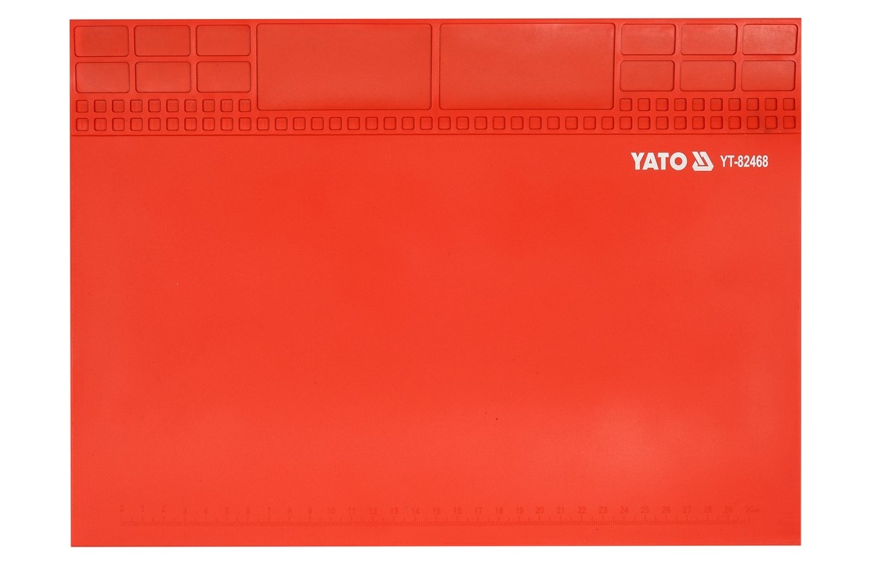 Сервисный коврик YT-82468 изготовлен из силикона, стойкого к высоким температурам. В верхней части отсеки разных размеров для винтов и аксессуаров. С другой стороны полоска магнитной ленты. Магнит достаточно сильный, чтобы удерживать крошечные винты в отсеках.
