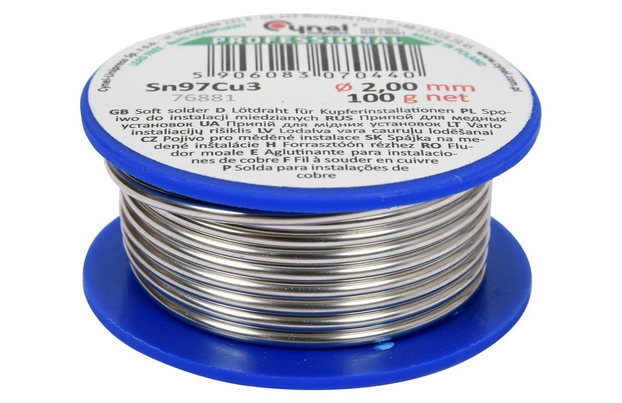 Связующее S-Sn97Cu3 (L-Sn97Cu3) DIN EN29453, олово с добавкой меди 3%, предназначено для мягкой пайки медных или латунных труб и фитингов в системах горячего и холодного водоснабжения, а также в системах центрального отопления.