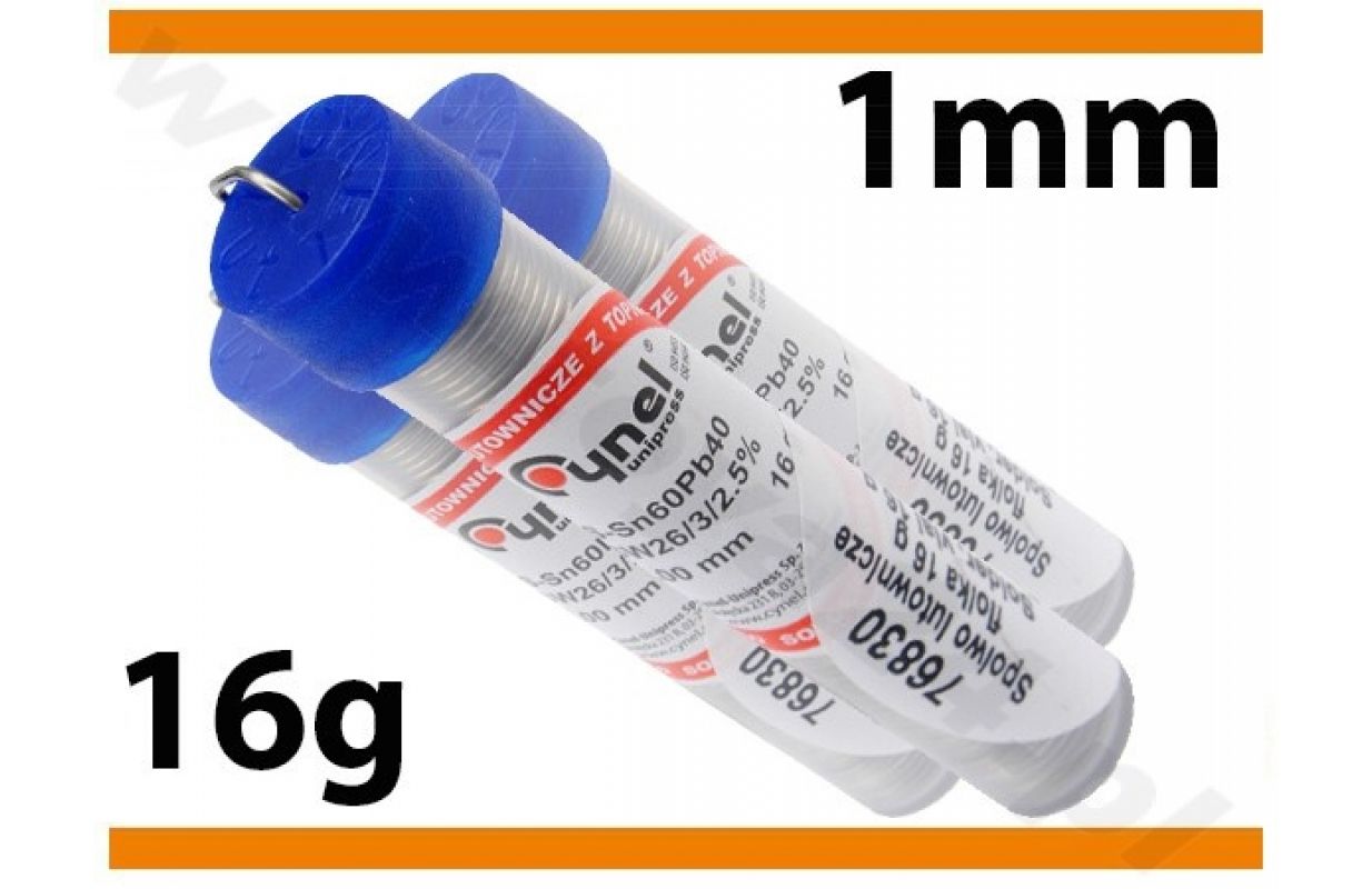 Метка Тойя Символ 76830 Серия ДЕК Приложение Электронная промышленность Диаметр 1мм Масса 16 г Состав сплава СН60Пб40 Характер Паяльная проволока Тип связующего для мягкой пайки Тип связующего этилированный Температура плавления 190 °С Тип флюса Ф-СВ26 Содержание флюса 2.5% Количество сердечников флюса 3