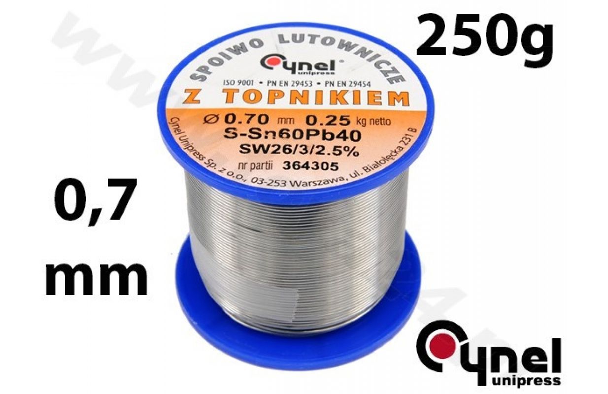 Припой с флюсом, изготовленный в первой оловянно-свинцовой плавке в соответствии с PN EN 29453: 2000, в непрерывном процессе литья без воздуха, затем экструдированный, что обеспечивает исключение присутствия оксидов. Толщина связки 0,7 мм и масса 250 г, с содержанием олова в продукте в пределах: 59,5% до 60,5%, а температура плавления в диапазоне от 183 °С до 190 °С. Флюс SW26 создан на основе канифоли и органического галогенного активатора, который после пайки "завязывается" в канифоль, поэтому не имеет прямого контакта с припоем и не вызывает коррозии, а также облегчает плавление и повышает текучесть припоя. Паяльные припои в основном используются в электронной промышленности, для производства стандартного электронного оборудования и компонентов, в электротехнике.