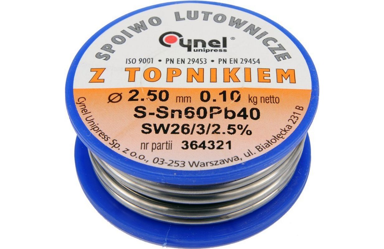 Номер позиции: 76822 EAN-5906083768224 Ø 2,50 мм. 100г.; Sn60%, Pb40% в шпуле