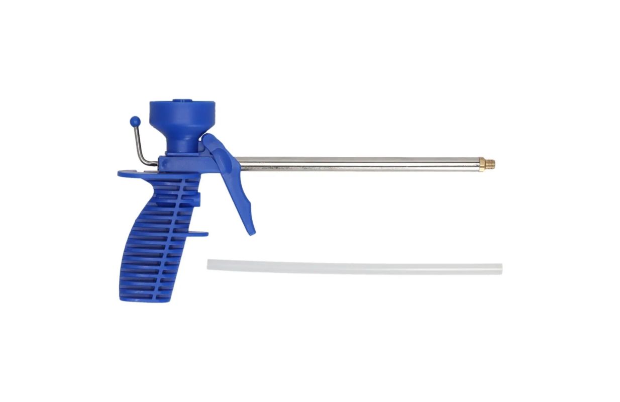 Пистолет для монтажной пены. Насадка изготовлена из латуни, что делает нанесение пены чрезвычайно точным. Никелированный ствол обеспечивает очень легкую очистку после окончания работы.