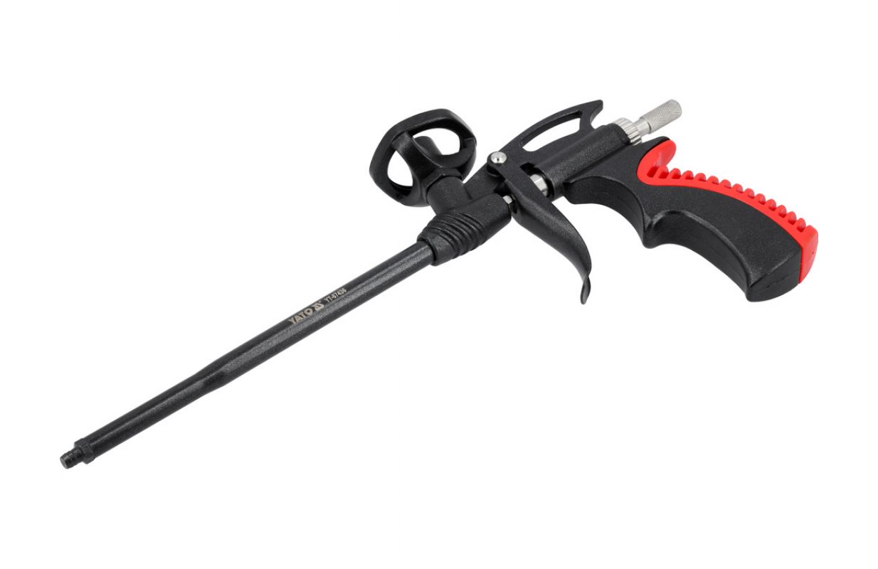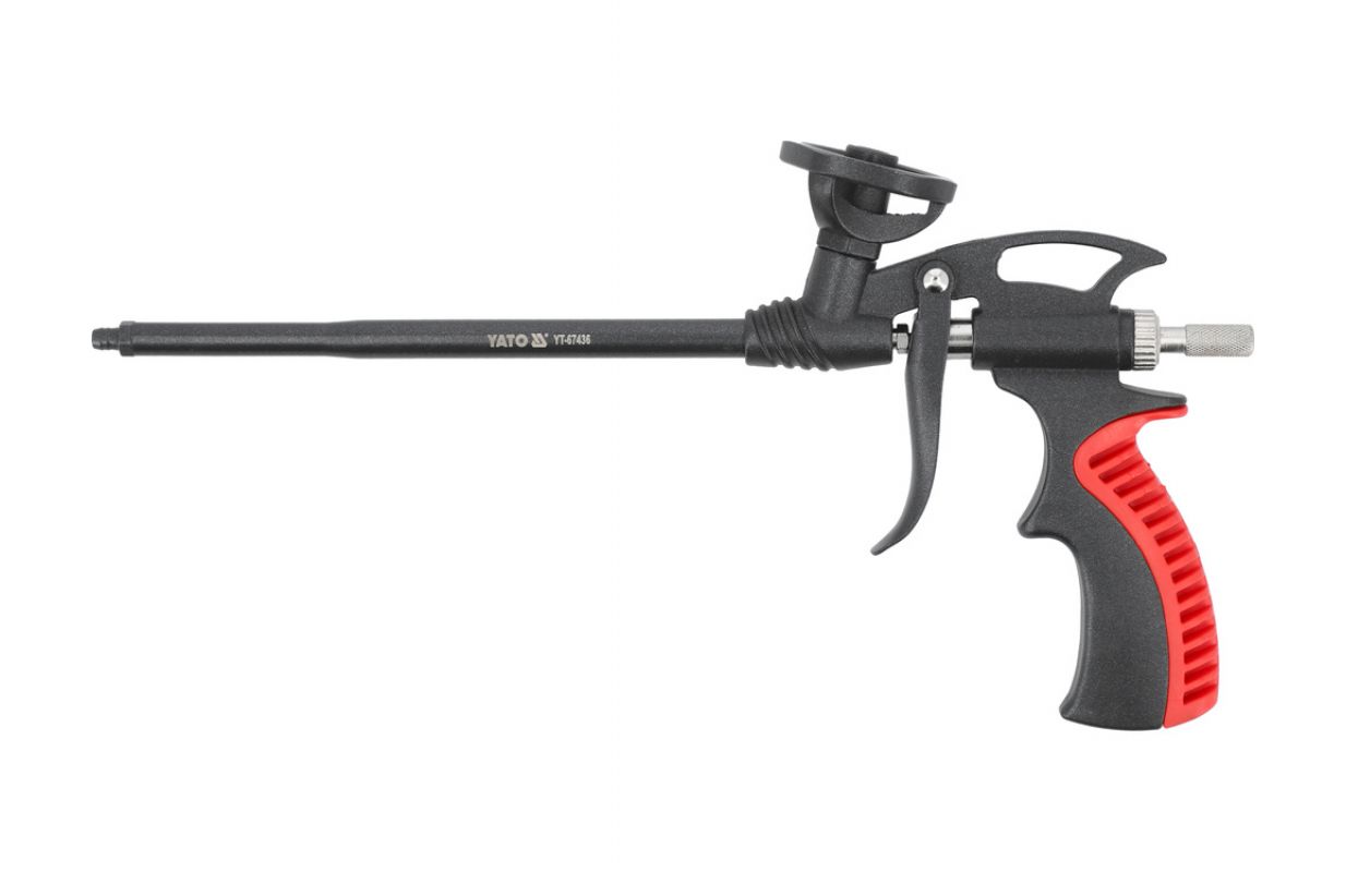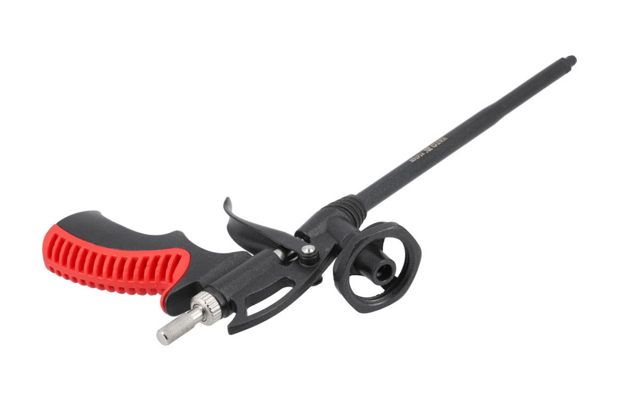 Пистолет предназначен для нанесения пенополиуретана. Он имеет регулировочный винт с рифленкой, защищенный от выпадения.