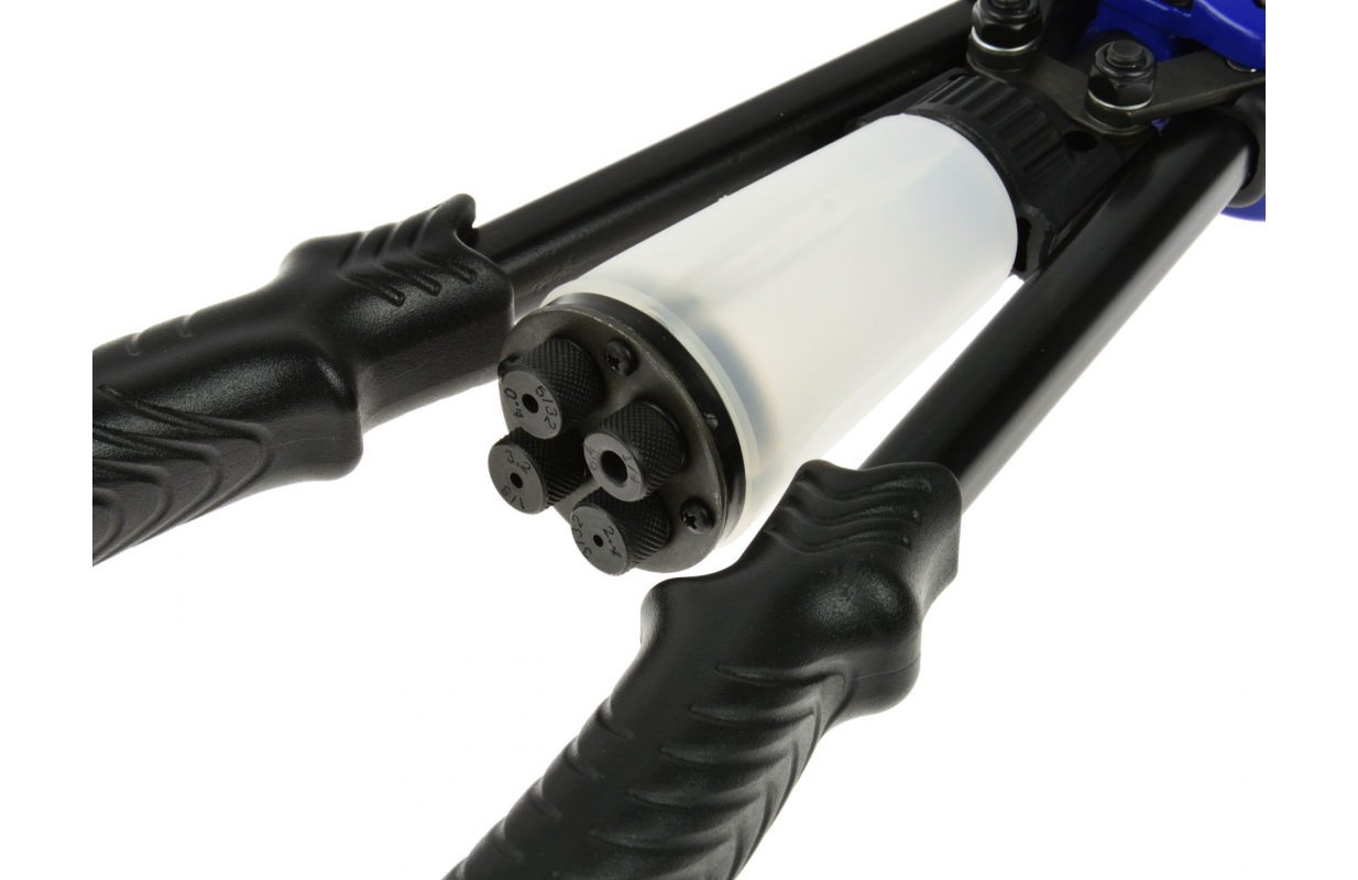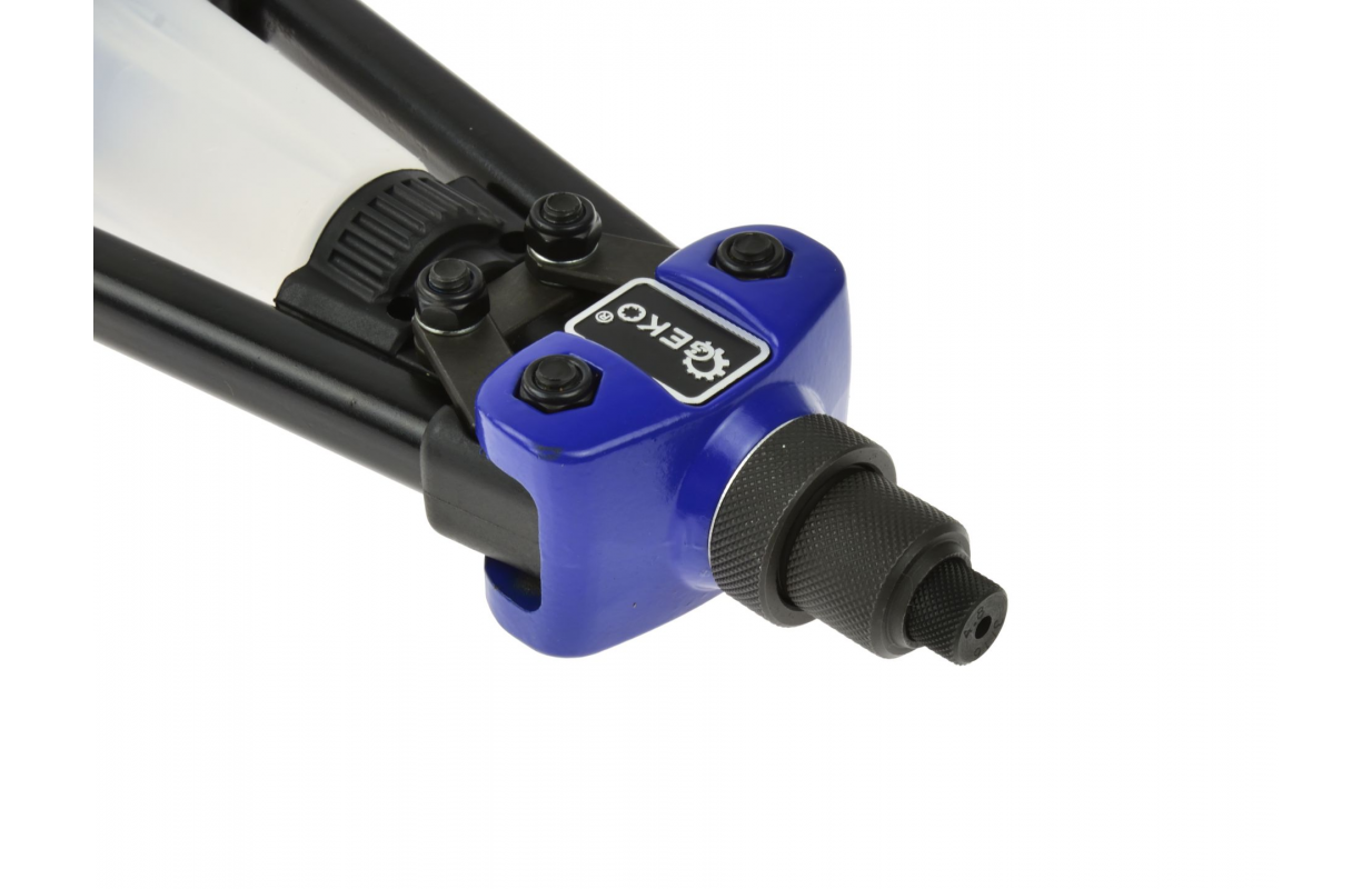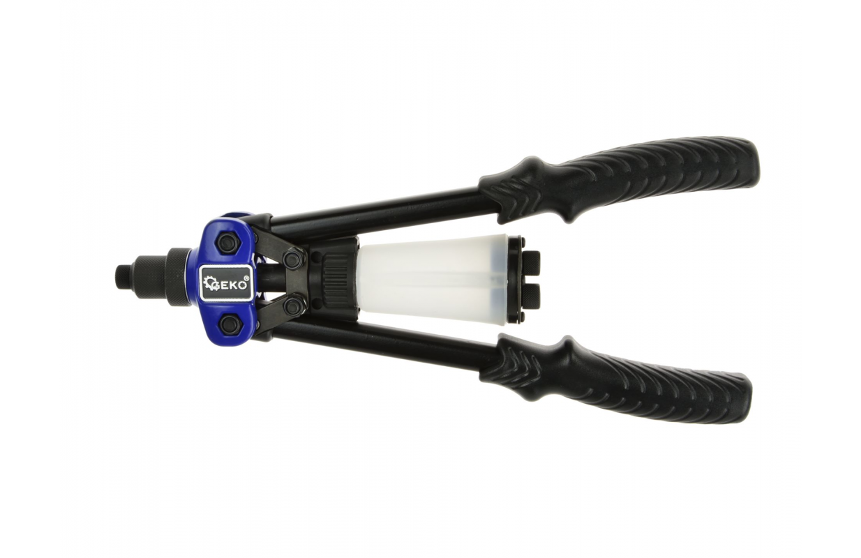 Заклепочник 2,4-6,4mm Заклепочник изготовлены из материалов высочайшего качества. С набором из пяти размеров 2,4 мм; 3,2 мм; 4,0 мм; 4,8 мм; 6.4 мм. Цанги завершены удобные, фасонные резиновые ручки для максимального комфорта.