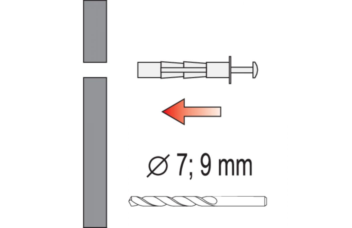зажимные дюбели, устанавливаемые в гипсокартон или материалы с полым пространством