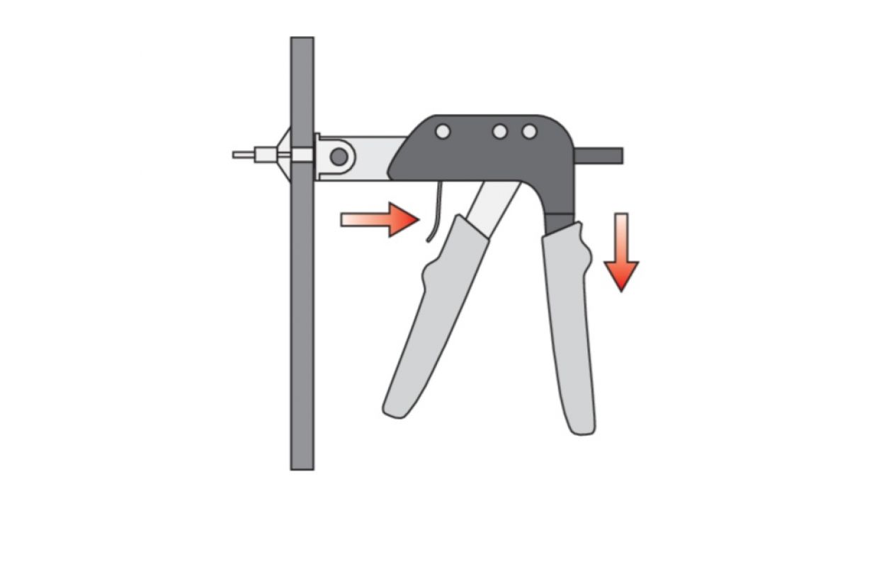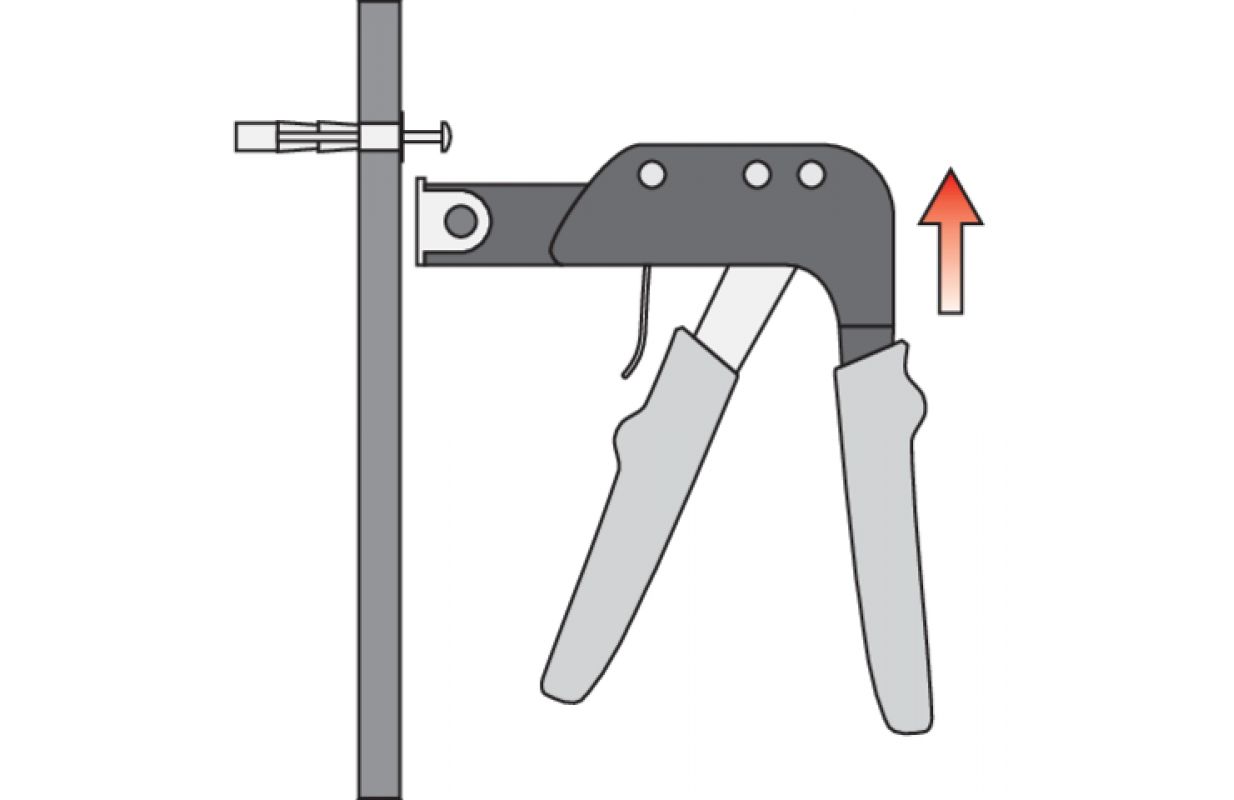 Обжимной инструмент предназначен для быстрого, повторяемого и эффективного закрепления штифтов типа "Molly" в гипсокартоне или материалах с полым пространством.