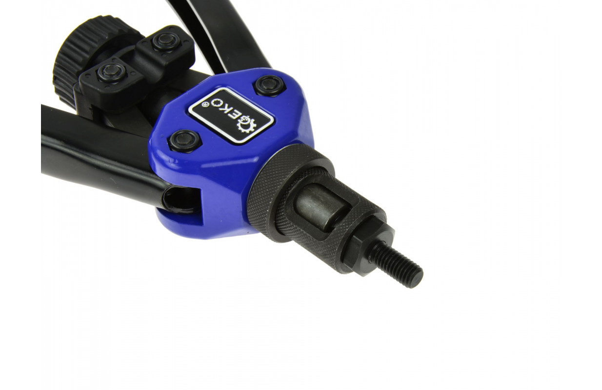 Головки заклепок изготовлены из высококачественной хромомолибденовой стали. Рукоятки отделаны профилированными резиновыми ручками для максимального комфорта работы.