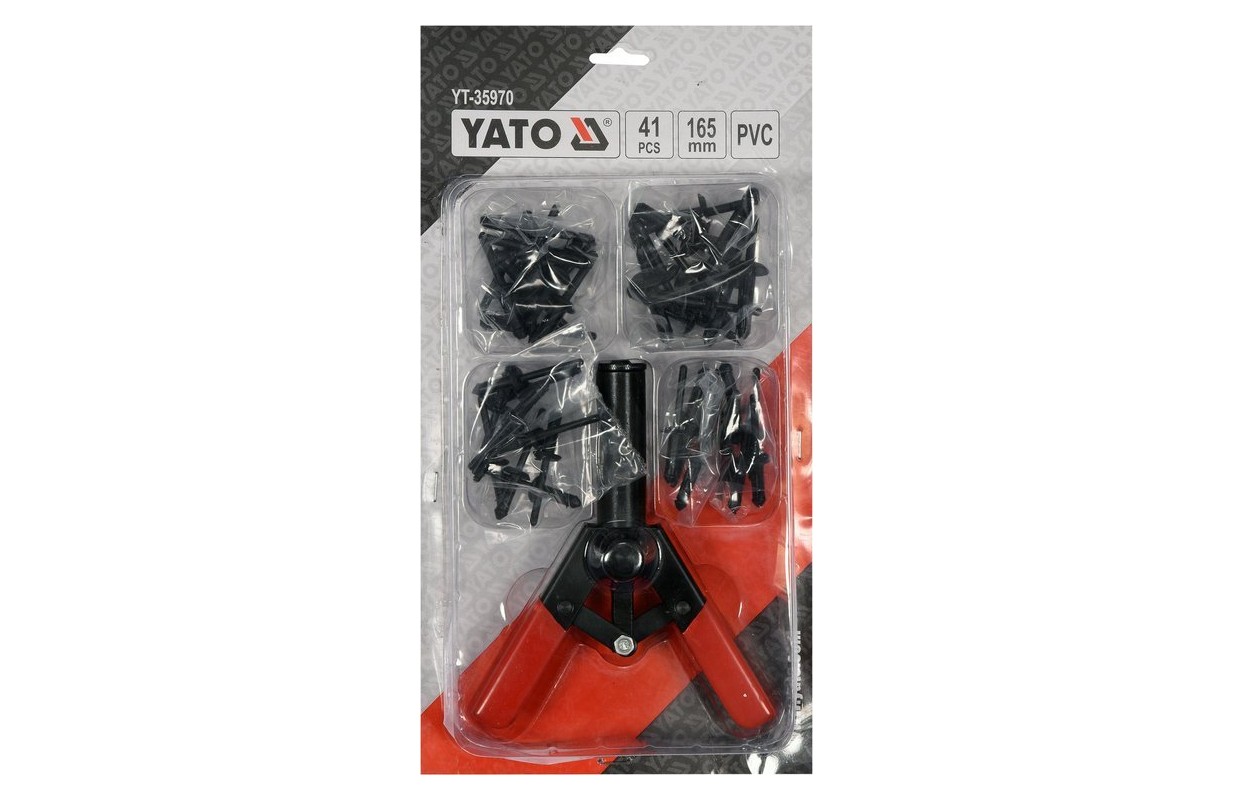 Рычажный заклепочник Yato, предназначенный для работы с пластиковыми заклепками .