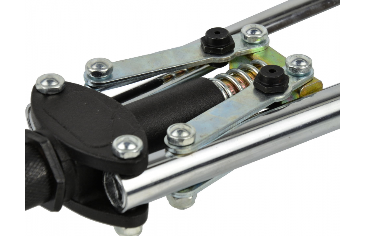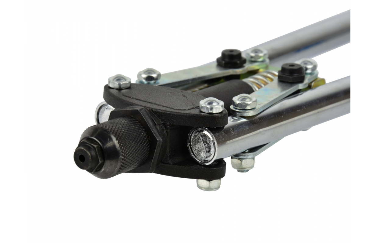 Инструмент, полезный практически в каждом доме, используется для соединения двух материалов вместе, например: плоских стальных прутьев, алюминиевых прутьев, кожи, ПВХ, листового металла и других материалов. Клепальный пистолет оснащен многочисленными усиленными элементами, что обеспечивает более длительный срок службы. Прорезиненные ручки и длинные дужки позволяют клепать без особых усилий.