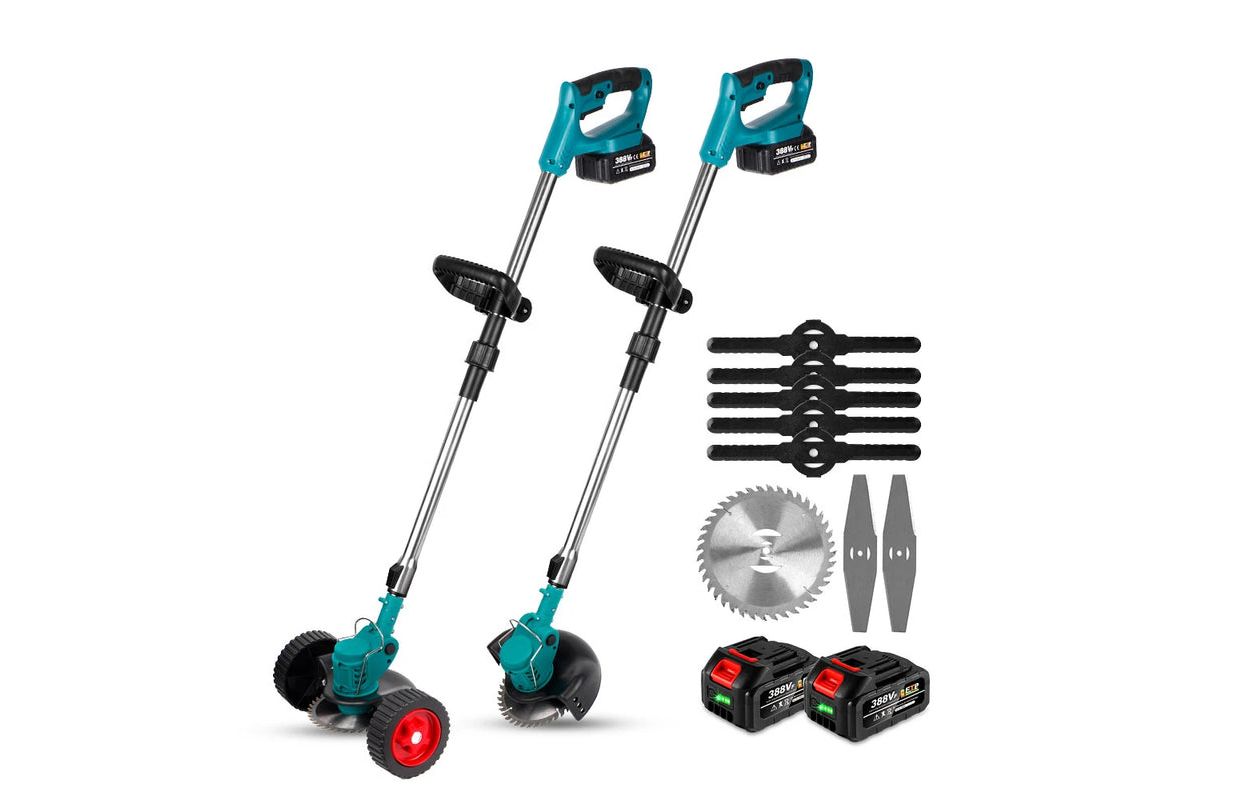 1 х газонокосилка 5 х пластиковое режущее лезвие 2 х металлическое лезвие 1 x 6-дюймовый пильный диск 1 х гаечный ключ 1 х колесо 1 х Руководство пользователя 1 х зарядное устройство 2 х Батарея